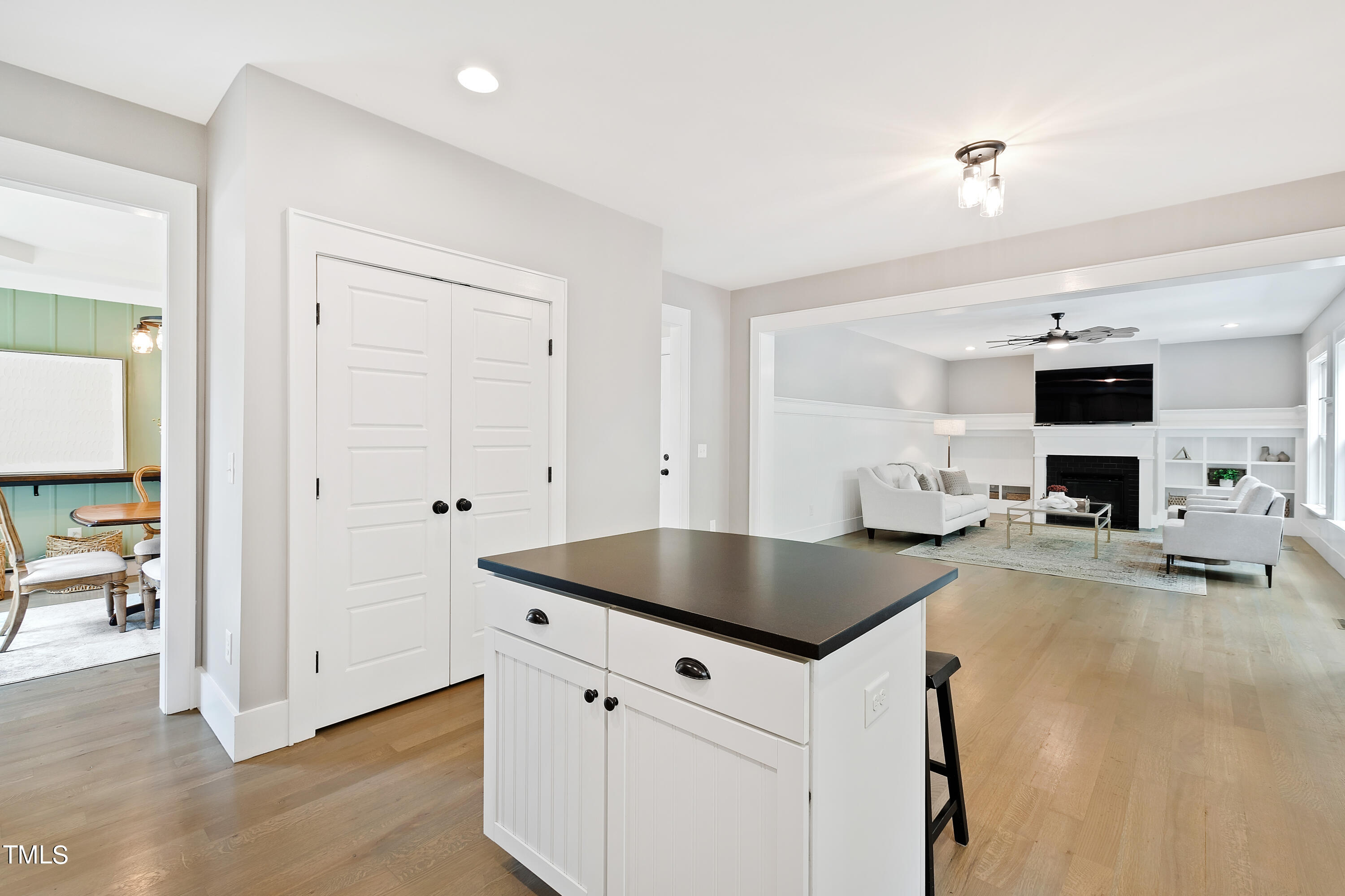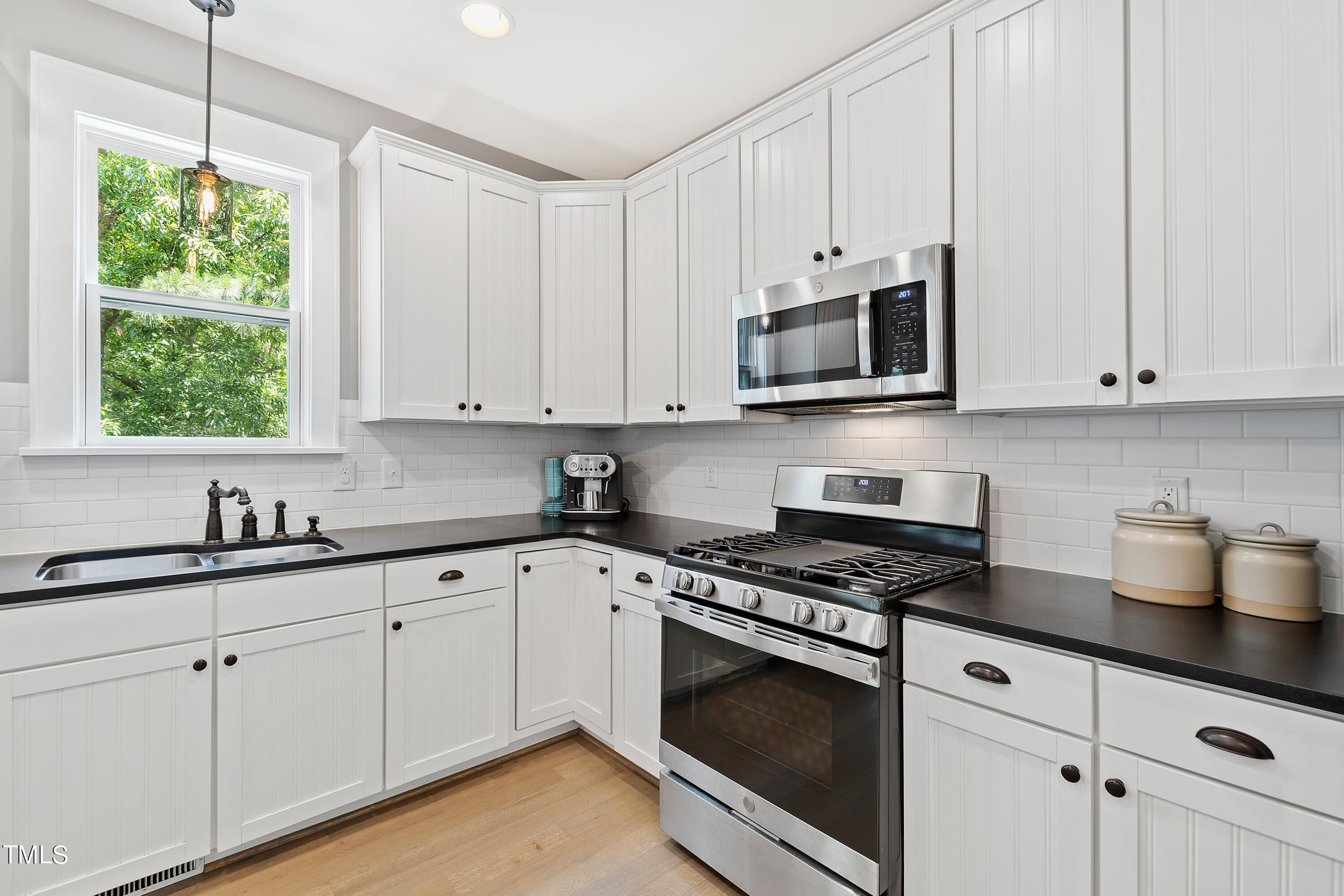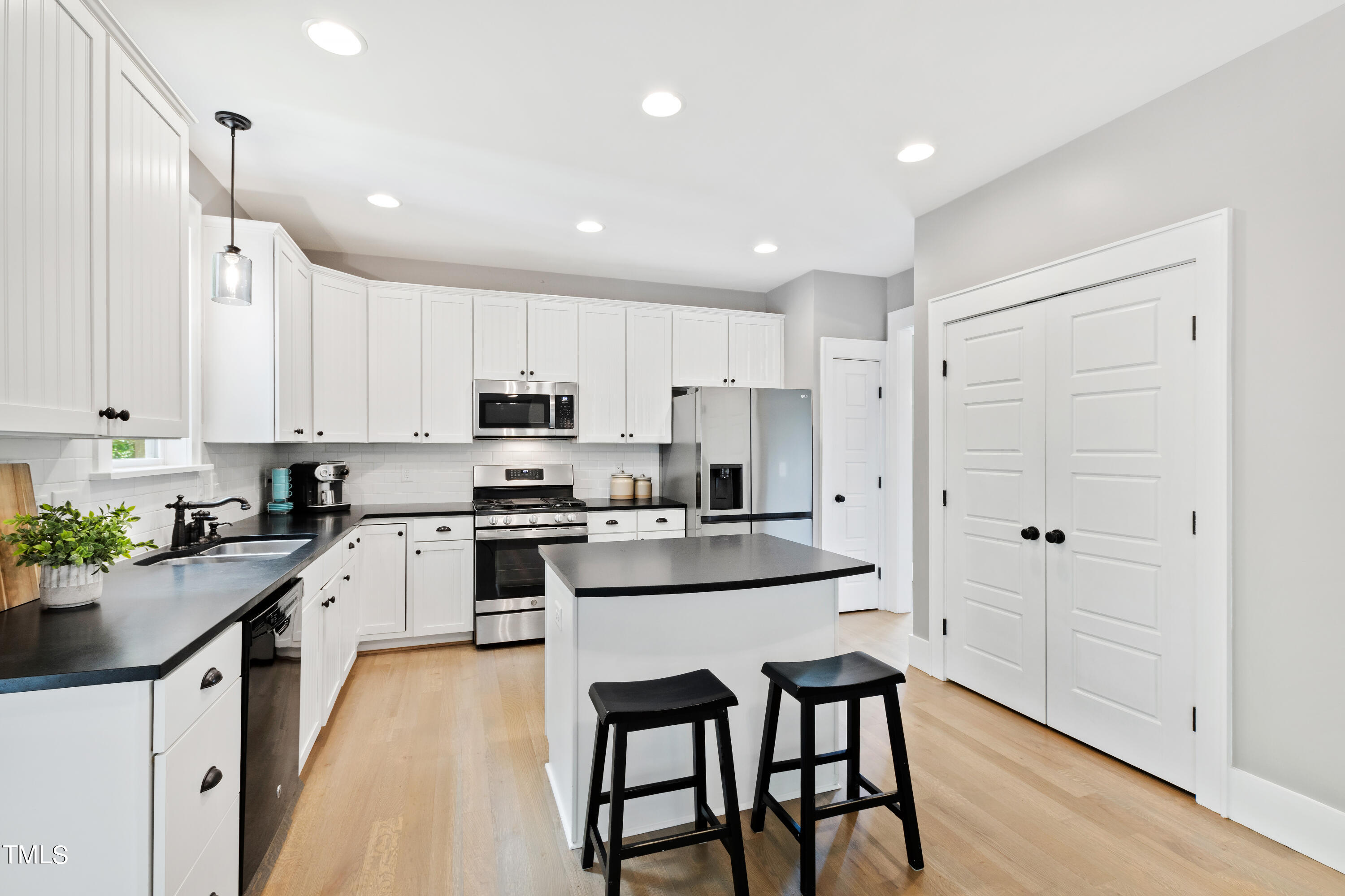 The main level boasts site-finished hardwood floors (newly installed in 2022) that exude warmth and elegance, providing a seamless flow between the kitchen, living, dining and first floor office areas. The spacious, open-concept kitchen features a gas range, a new dishwasher, ample counter and storage space, making it a chef's delight.