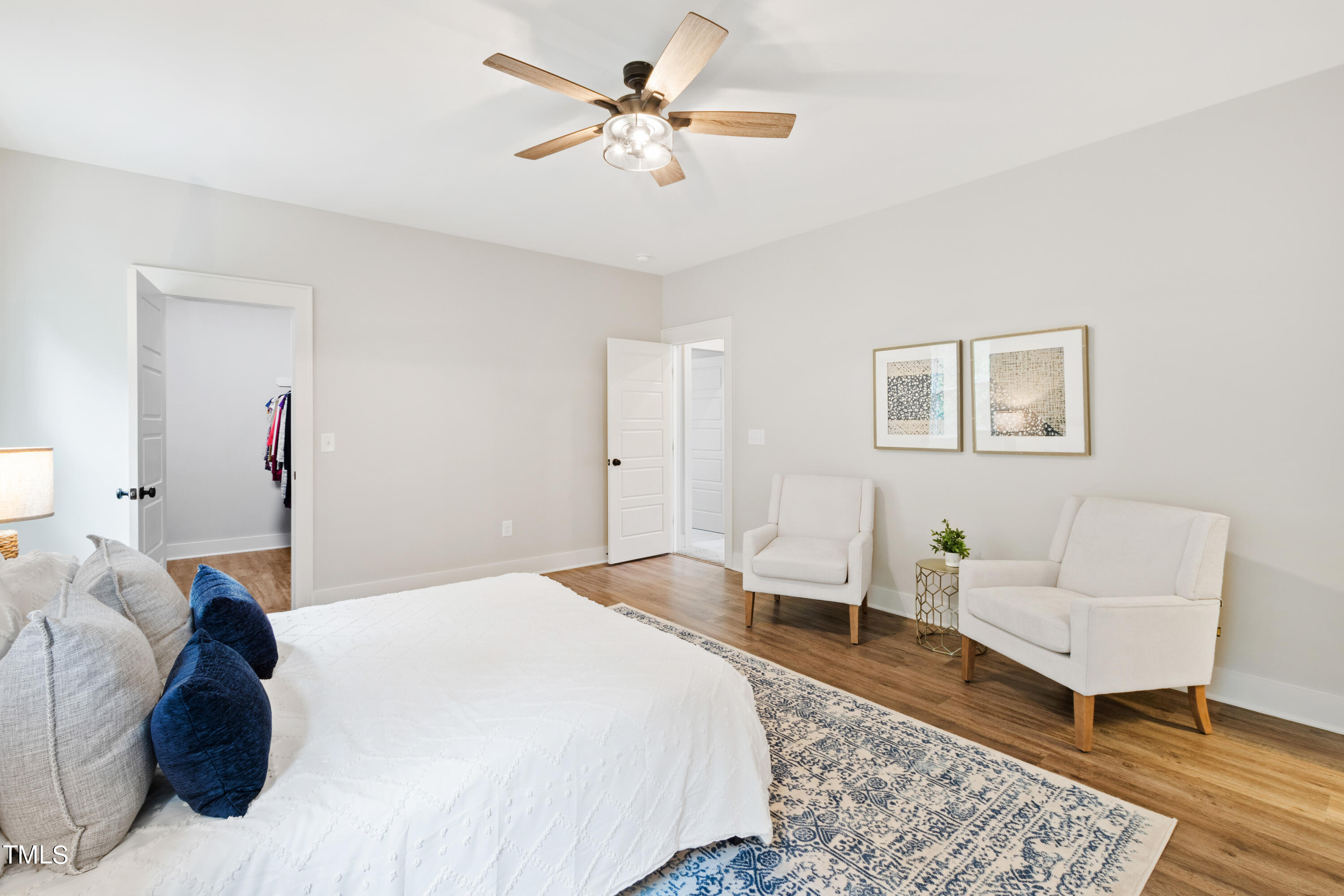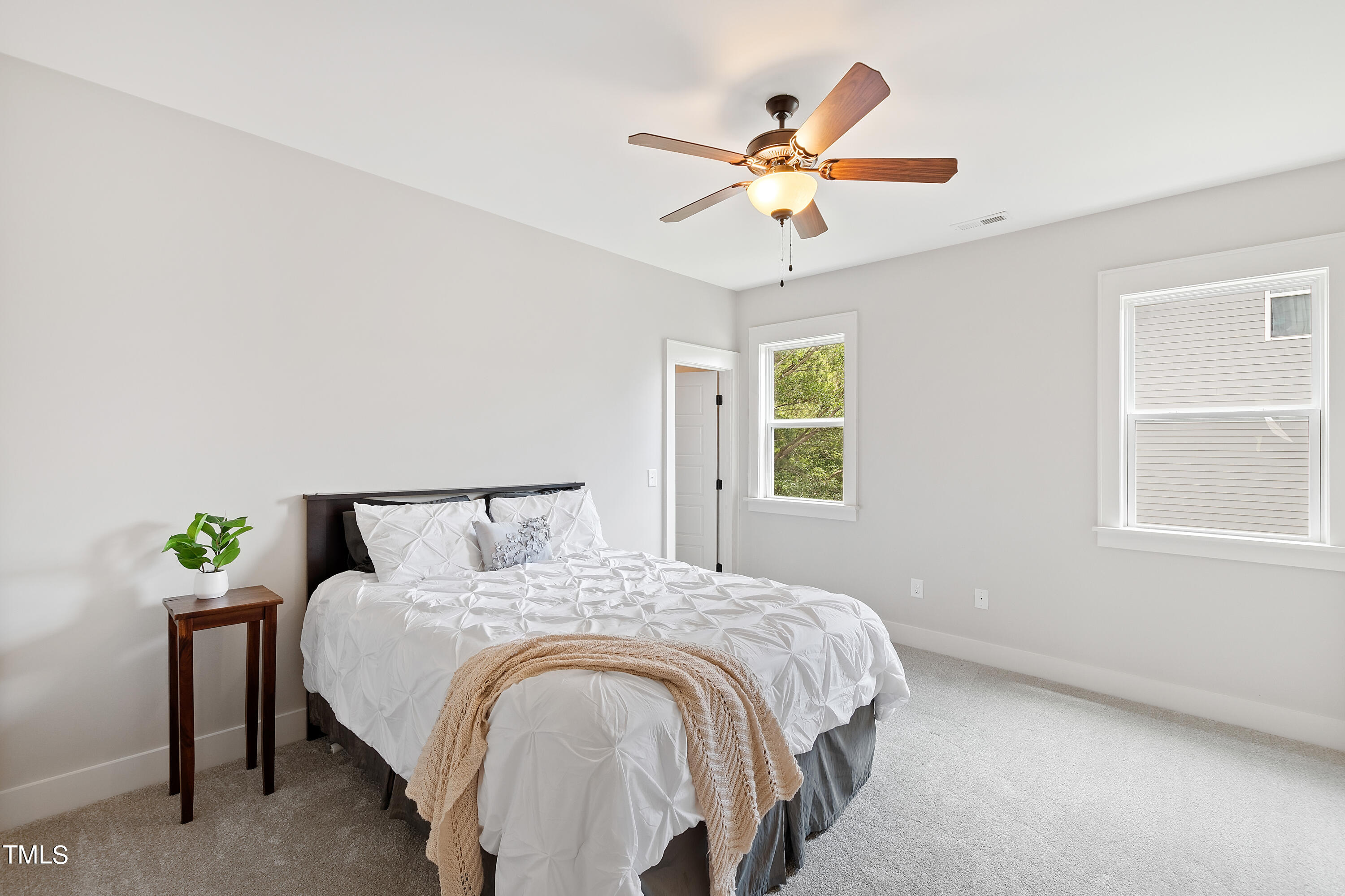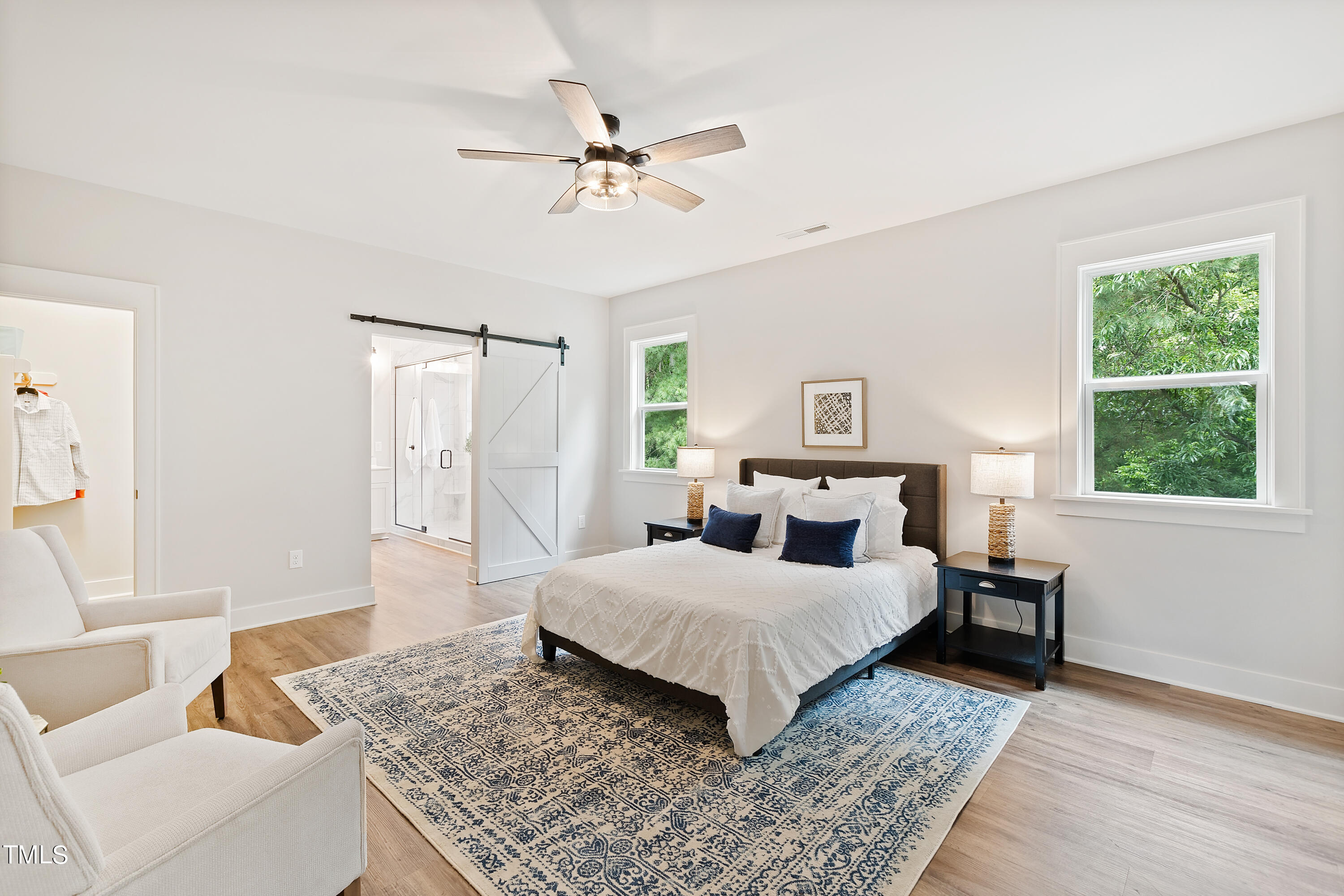 The second-floor primary suite offers two walk-in closets and a renovated bathroom (2022) with new luxury vinyl plank flooring, creating a luxurious oasis for relaxation. Three additional bedrooms with ample closet space and fresh paint, new carpet, and padding create a bright and welcoming atmosphere.