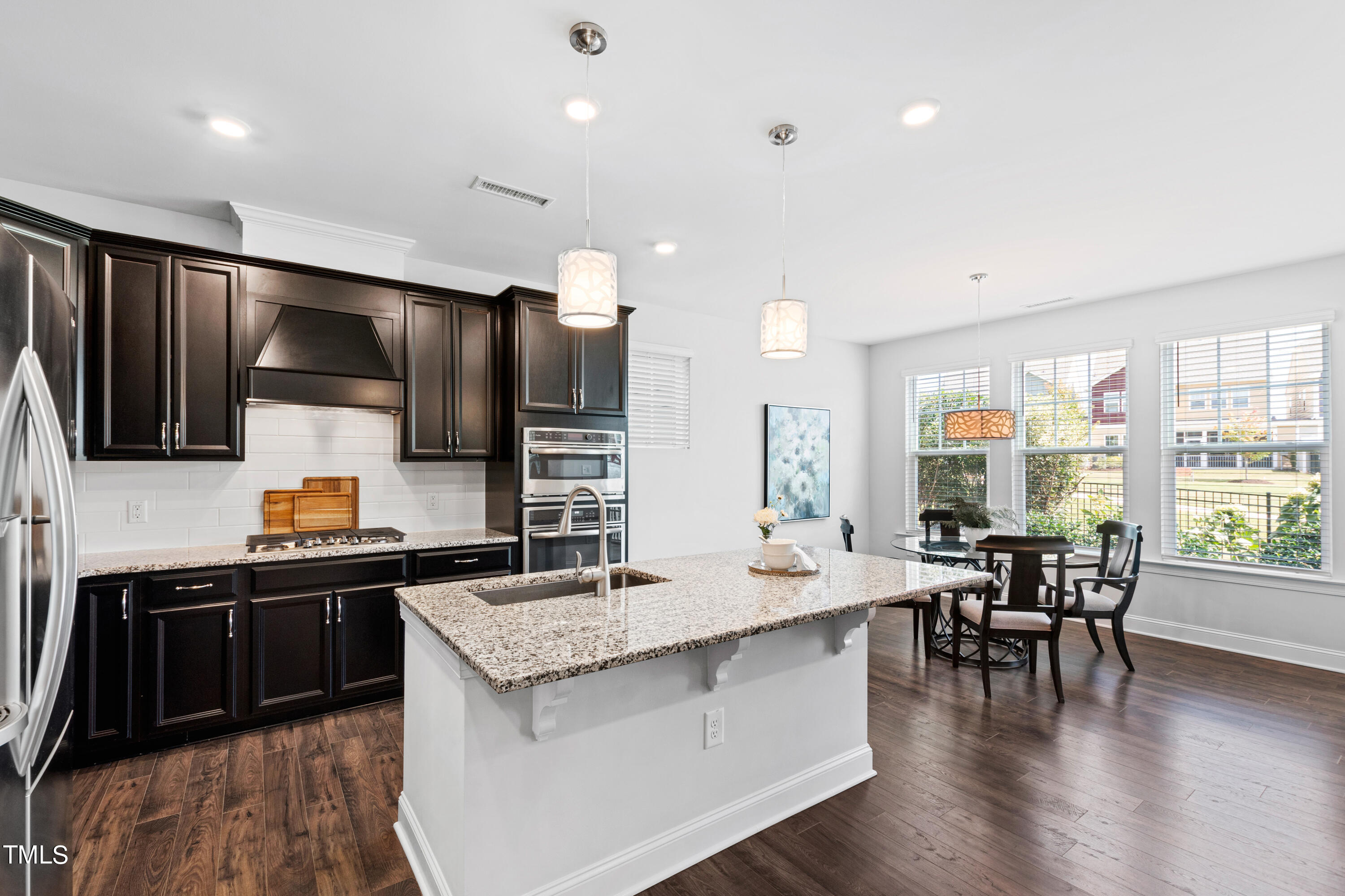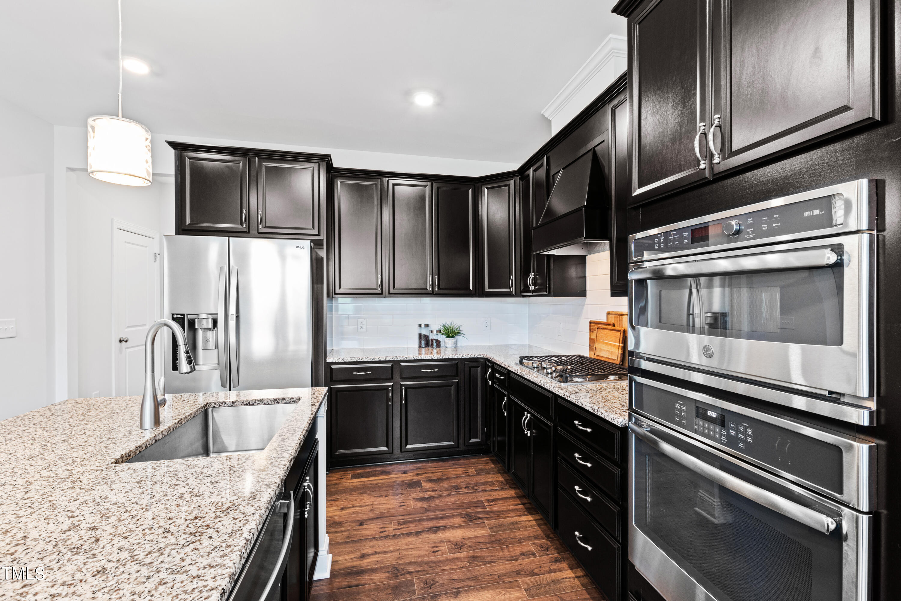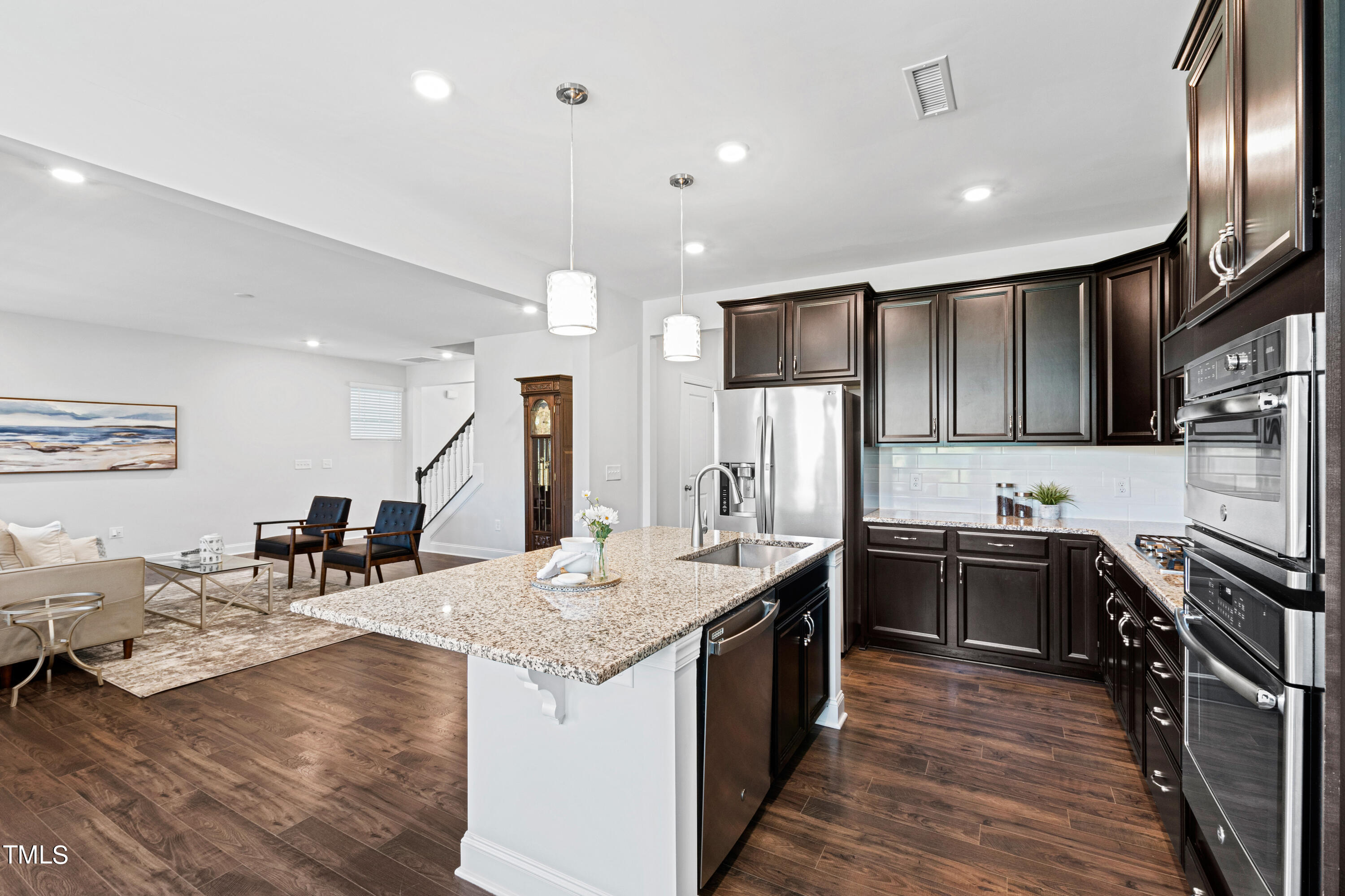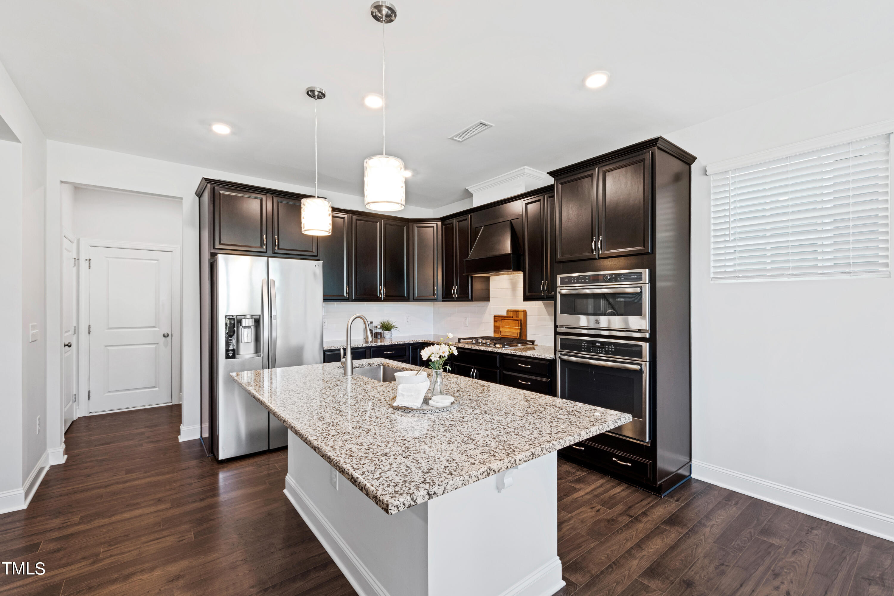 The main level boasts luxury vinyl plank flooring, a spacious walk-in pantry, and an open-concept kitchen with gas cooktop, built-in oven, stainless steel appliances and a large island ideal for entertaining.