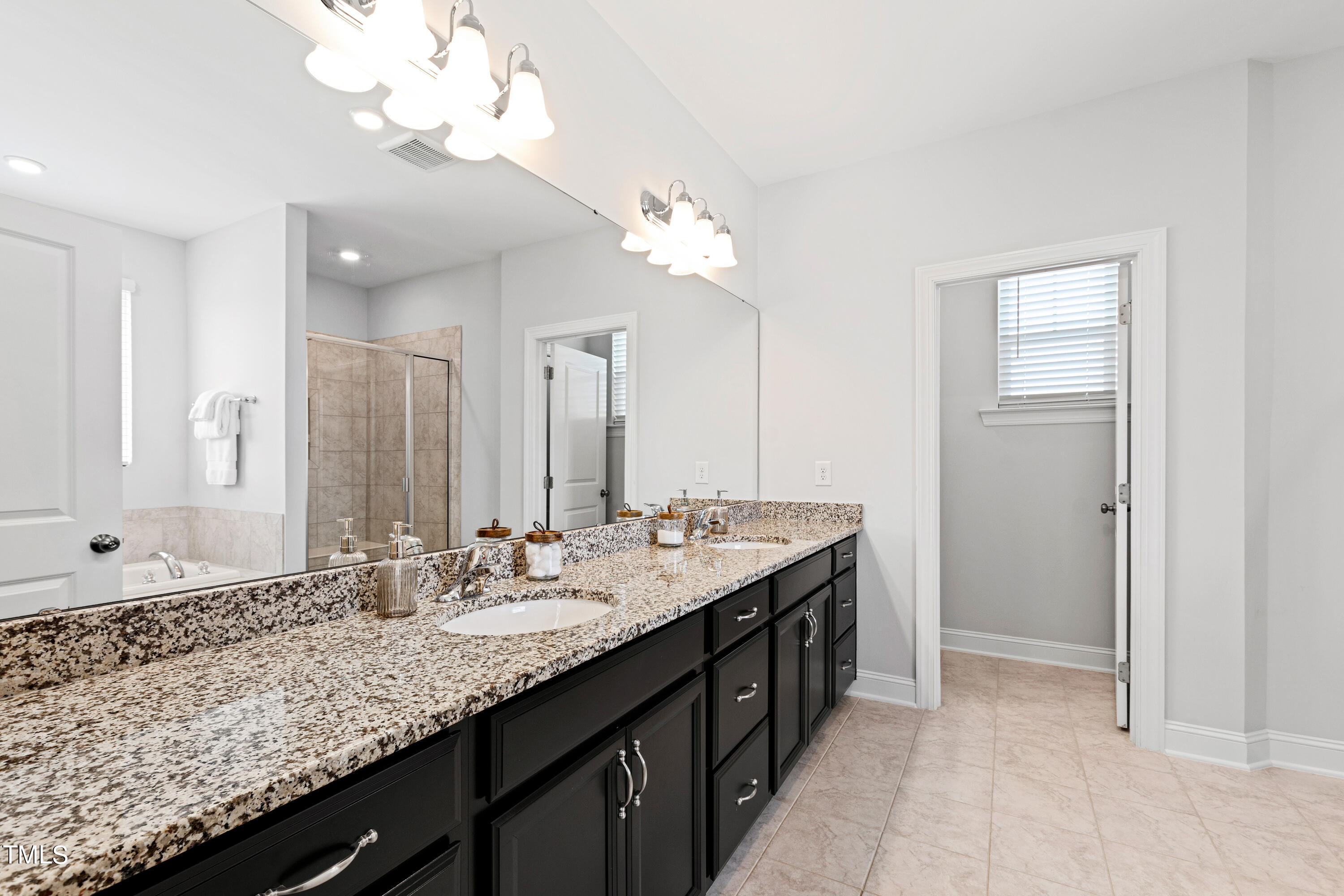 Upstairs, the oak tread staircase leads to the primary suite, which includes a large walk-in closet and an owner's bath with granite countertops. Two additional bedrooms and a laundry room complete the second floor.