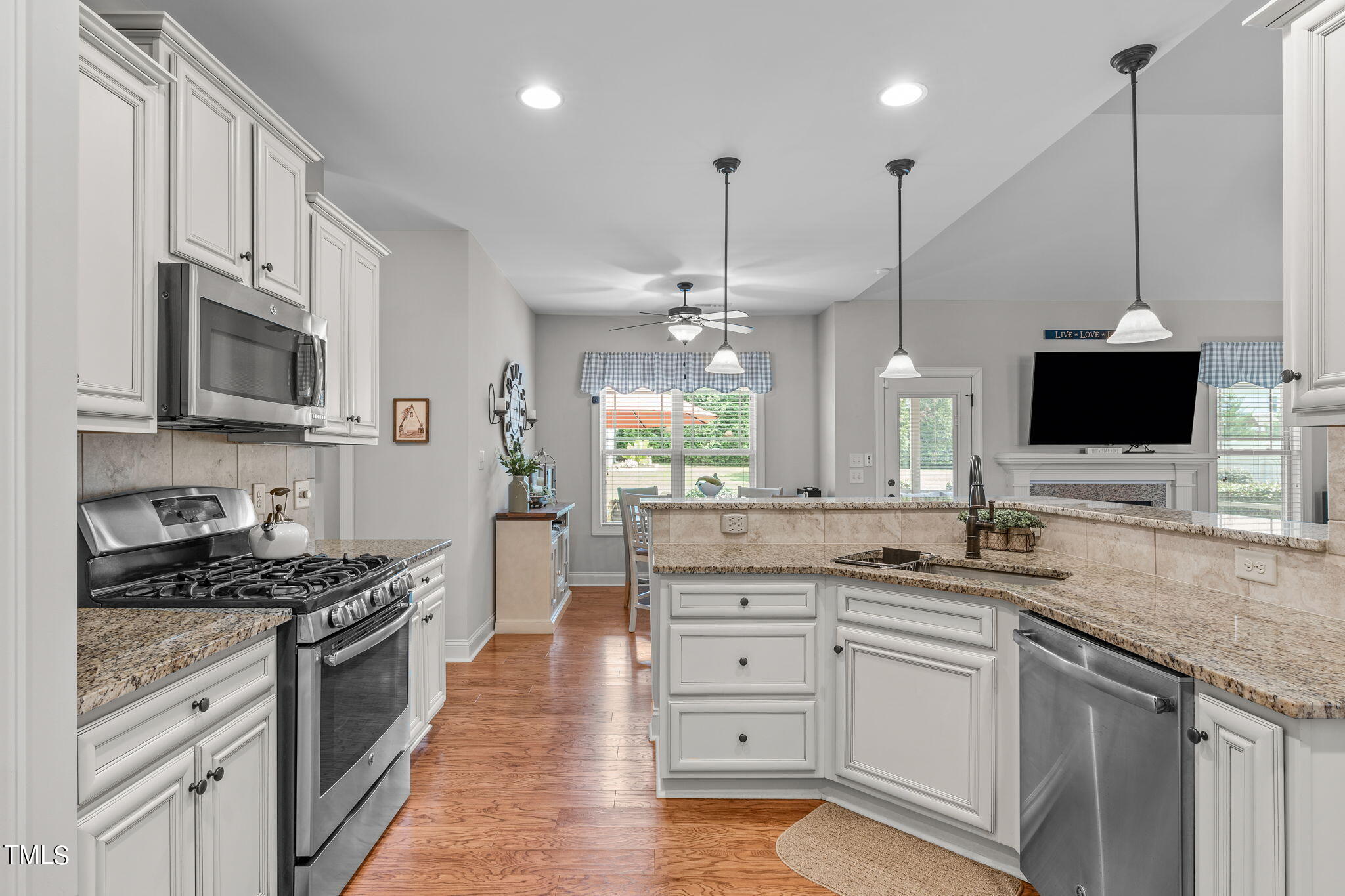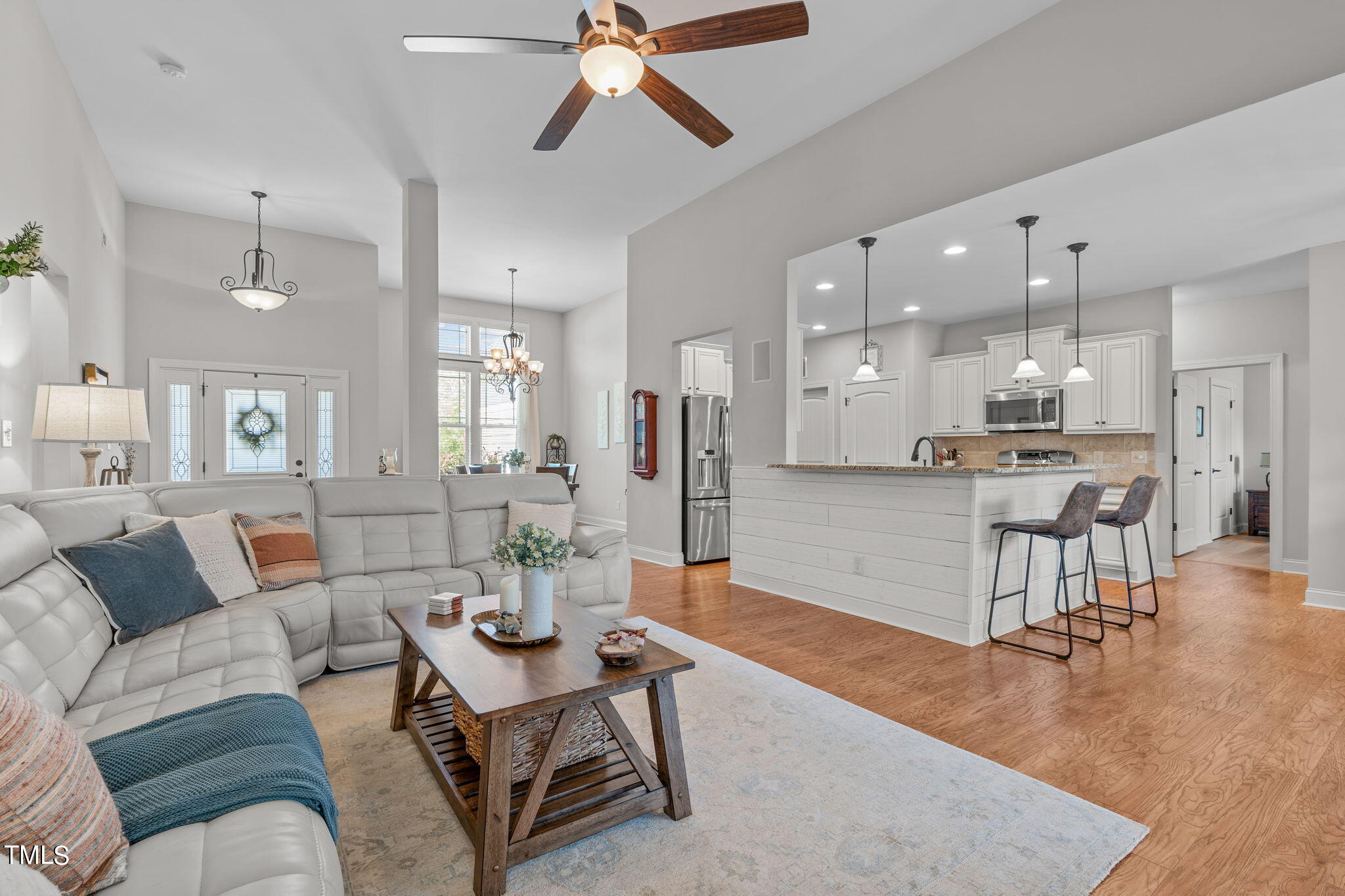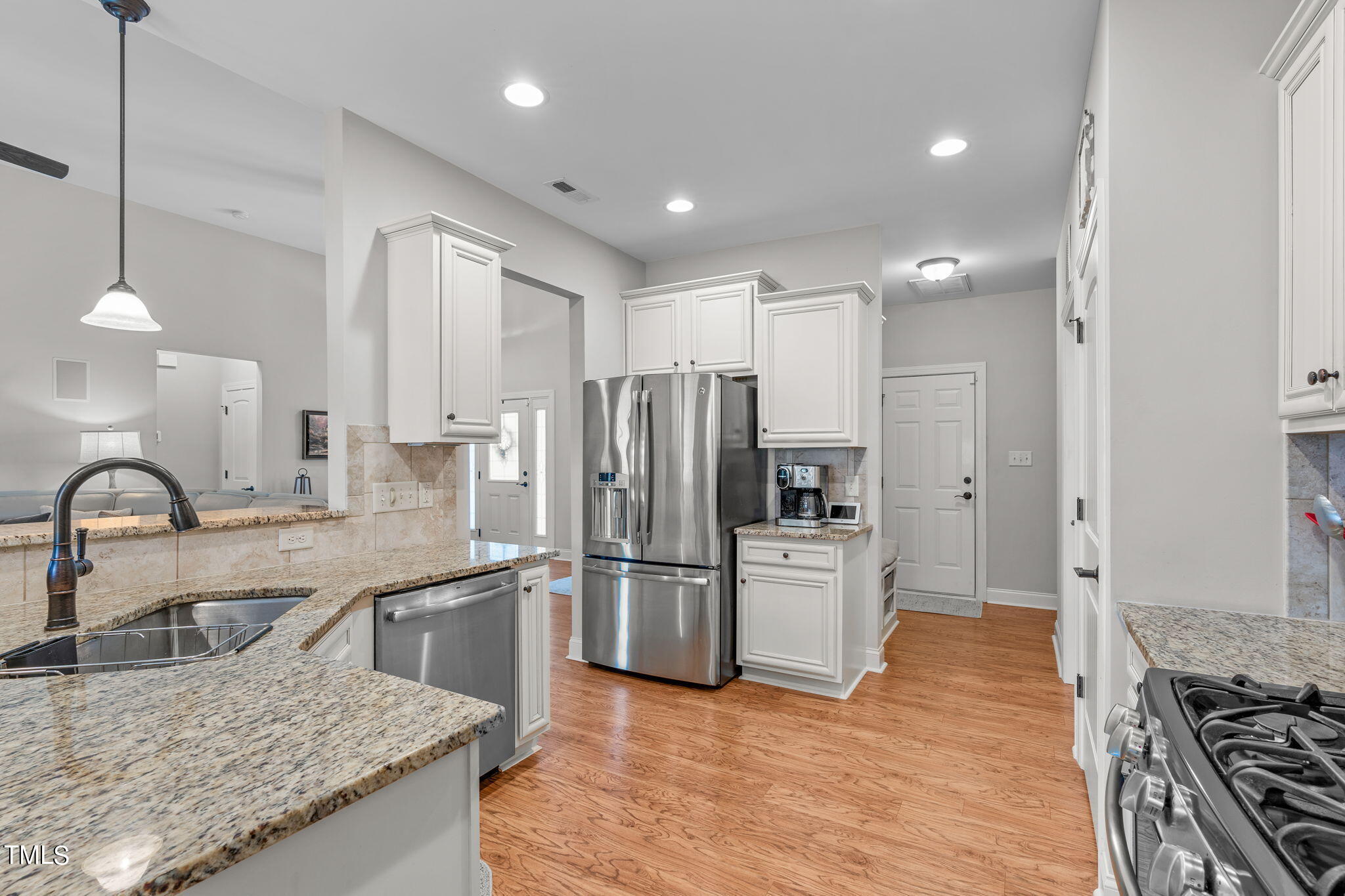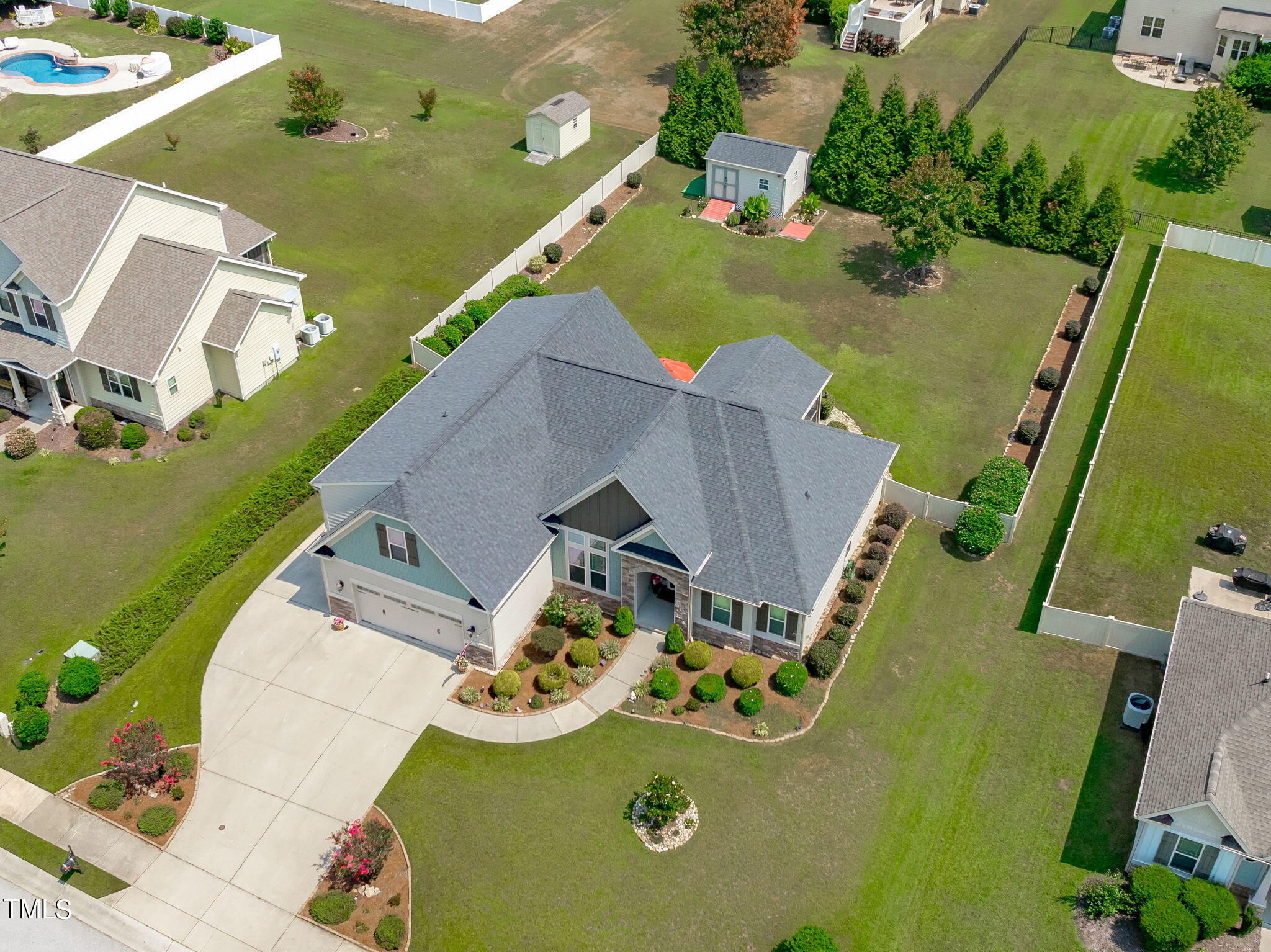 Welcome to your Dream Home! A meticulously maintained gem that combines modern luxury with thoughtful functionality. This 4 bed + bonus room, 3 full bath, 2 car garage residence offers ample space for both relaxation and entertainment. Situated in the desirable Adams Point community, this home has been lovingly updated and is ready to welcome you. Open floor plan on the main level, with plenty of natural light. Vaulted ceilings and elegant hardwood floors set a warm and sophisticated tone throughout the space. The heart of the home is the beautifully updated kitchen, featuring sleek granite countertops and stainless steel appliances. Spacious living and dining areas flow seamlessly, perfect for gatherings or quiet evenings. The first floor also includes a luxurious primary bedroom suite with a private bath, offering a serene retreat with high-end finishes and modern amenities. Two additional bedrooms on the main floor are generously sized, complemented by a well-appointed full bathroom. Step outside to enjoy your own private oasis. The screened porch provides a comfortable space for year-round relaxation, while the large, epoxy-coated patio is perfect for outdoor dining and entertaining. The fully fenced rear yard ensures privacy, while the professionally landscaped yard provides a lush lawn. A separate work shed adds extra versatility, whether you need storage or a dedicated workspace. The home features New Zealand wool carpets on the stairs and second floor, offering a plush, eco-friendly touch that adds comfort to every step. The fourth bedroom, located on the second level, is perfect for guests or could serve as a home office.The property is equipped with a whole house generator. New roof installed in 2019. Every detail of this home has been carefully considered to provide comfort, convenience, and style. Don't miss the opportunity to make this superbly maintained and updated home yours.