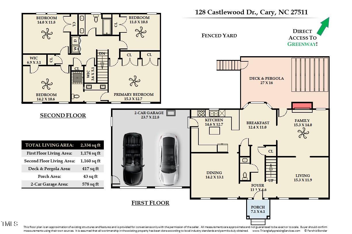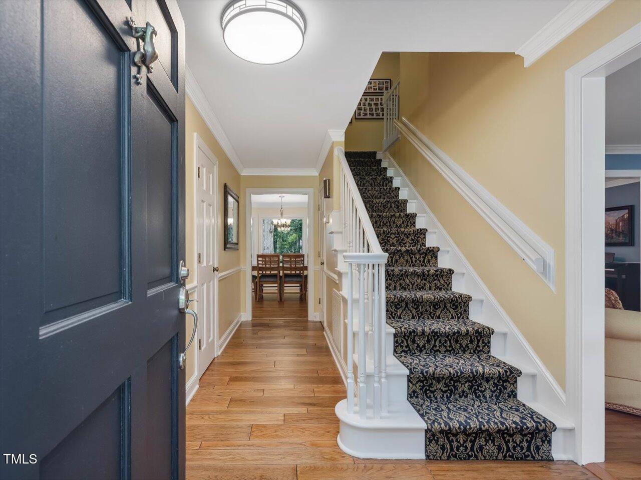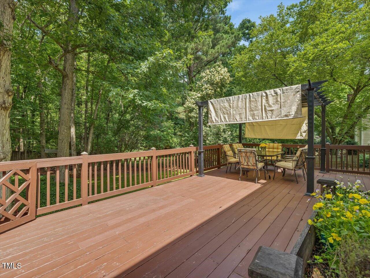 **$25,000 PRICE CUT** Looking for Greenway Direct Access, Quiet Neighborhood in Central Cary, and Upgraded Kitchen and Bathrooms? Welcome! Elegant Main floor with Hardwoods, Crown Moulding, and Wainscoting. UPGRADED Kitchen w/ Polished Granite, Center Island, beautiful custom-made Tiled Backsplash, and Ample Storage Space. UPGRADED ALL Bathrooms w/ Polished Granite, Tile, and Wainscoting! NEW Carpet with moisture barrior padding on Second Floor. King-Sized Primary Bedroom. Expansive Deck & Pergola surrounded by trees, overlooking the backyard, perfect for entertainment. ActiveYards Black Aluminum Fenced Backyard, perfect for spending time outdoors enjoying the nature, and Great for your Dogs to Run and Play! Epoxy coated 2-Car Garage Floor plus ample cabinets storage. 30-Year Roof installed in 2015. HVAC age 2 Years (2nd floor). MAINTENANCE FREE LeafGuard Gutter Helmet and Waterspouts. Double-Pane Insulated Energy-Efficient Windows throughout. Fully Encapsulated walk-in crawlspace. Quick access to Shopping/Dining/Medical/US 1 & 64.