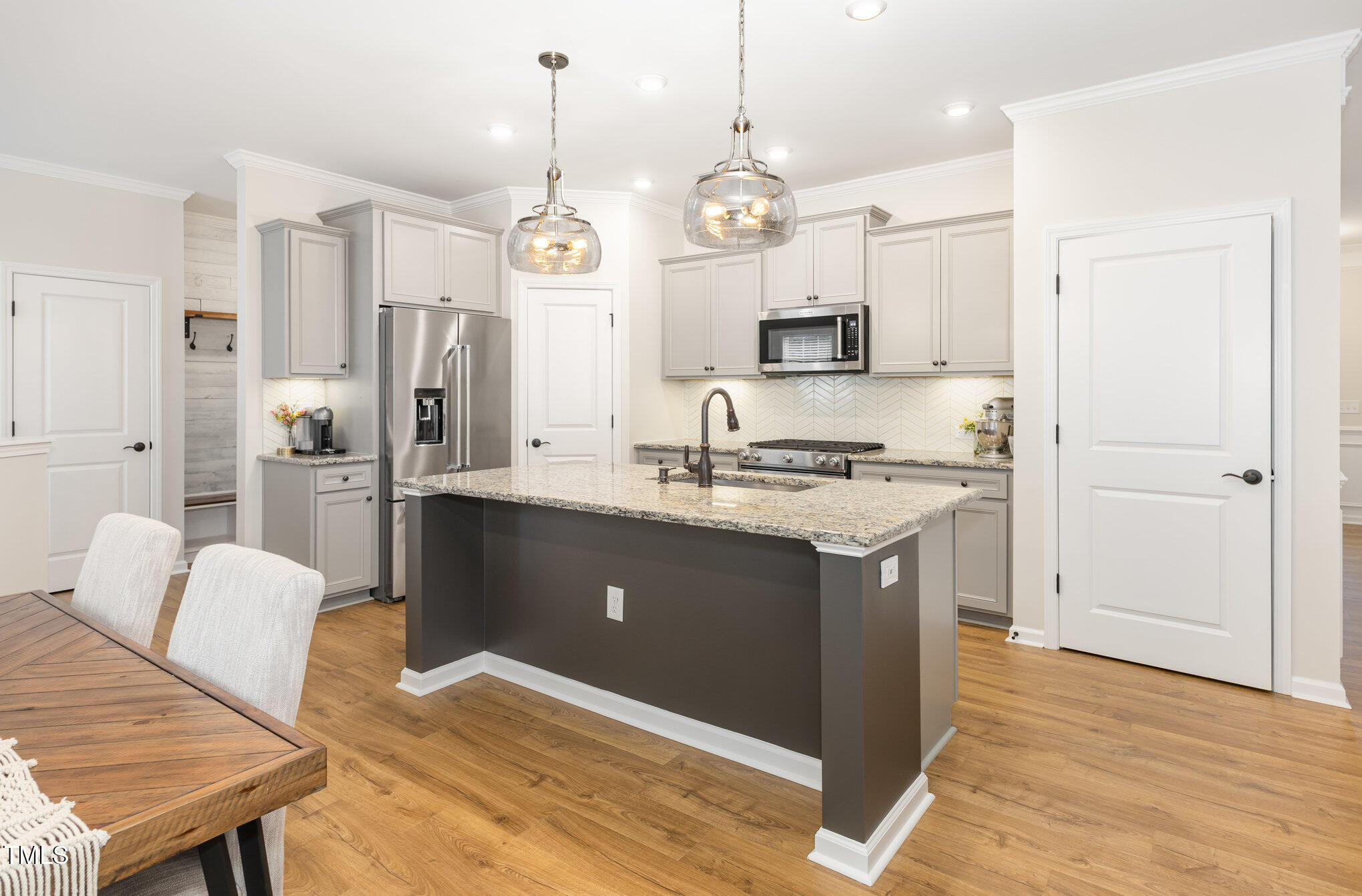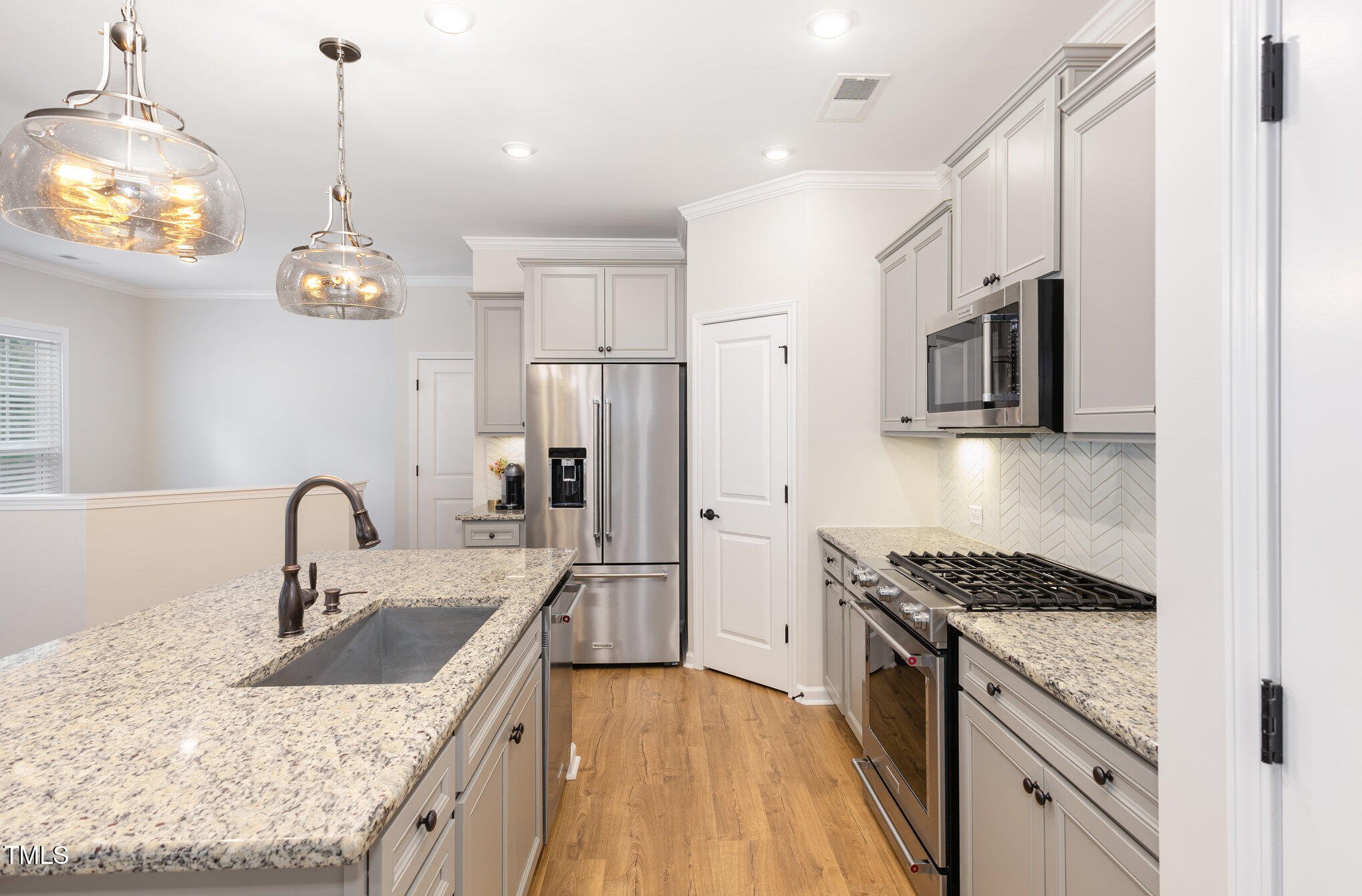 Step outside to a deck, fully fenced back yard with mature landscaping in a quiet cul-de-sac location. Close to downtown Wake Forest, Heritage shops, and 98 Bypass for easy commuting. Fresh, stylish, and packed with upgrades--this one is a must-see!