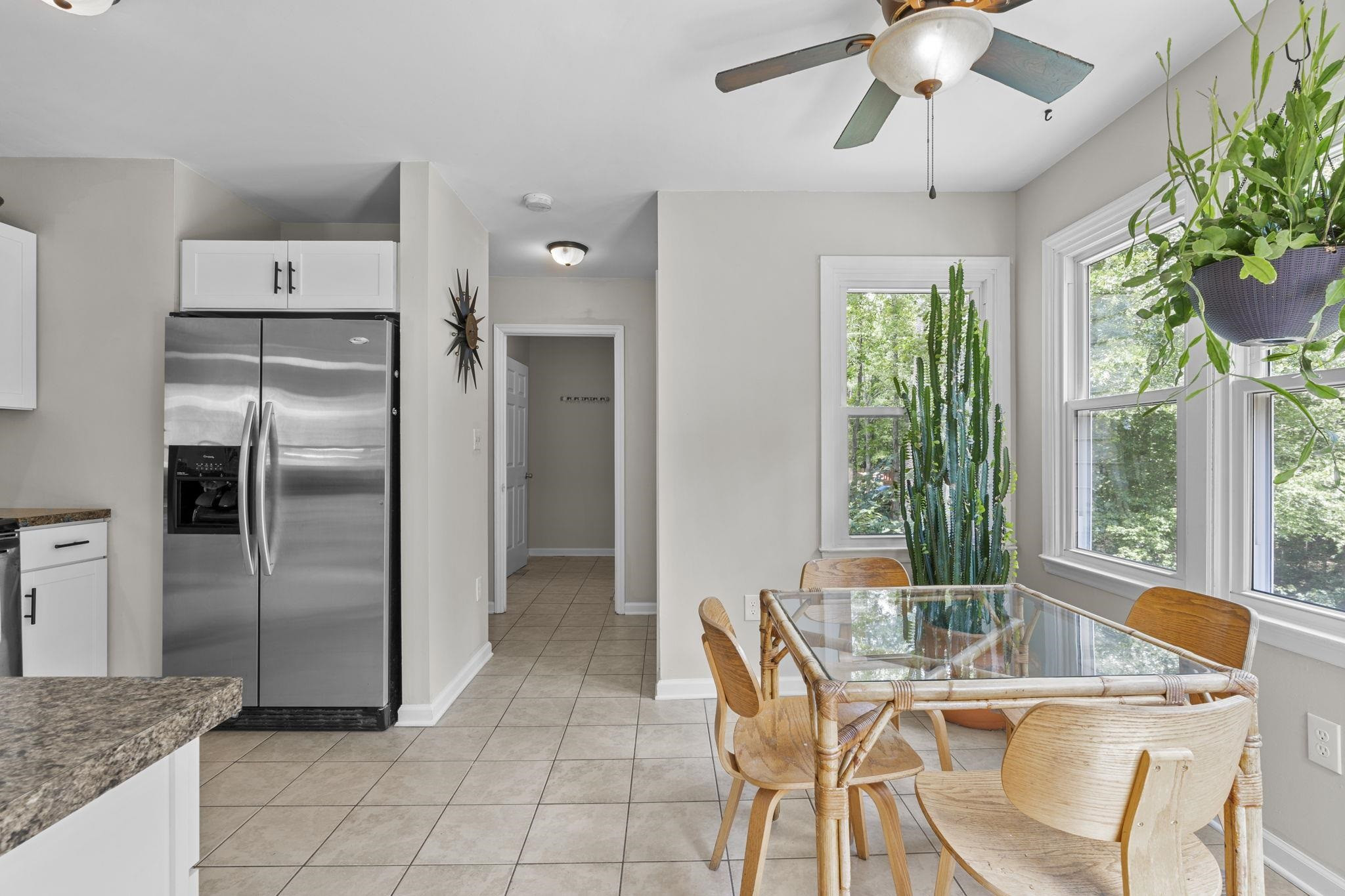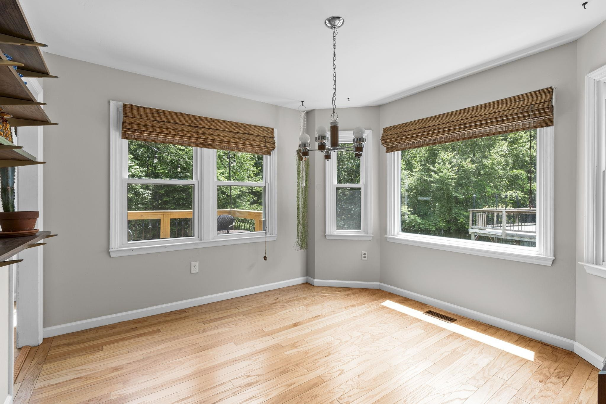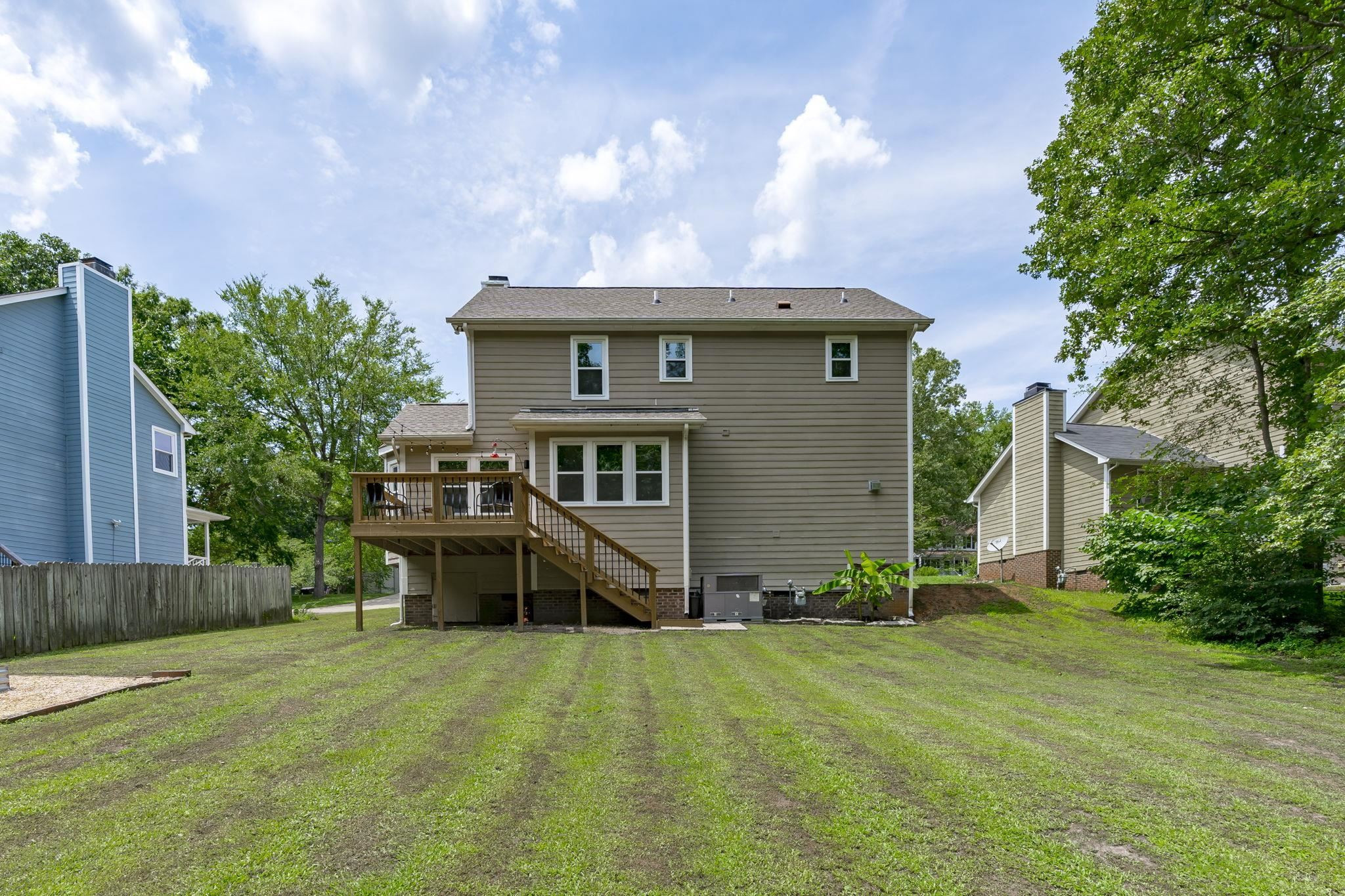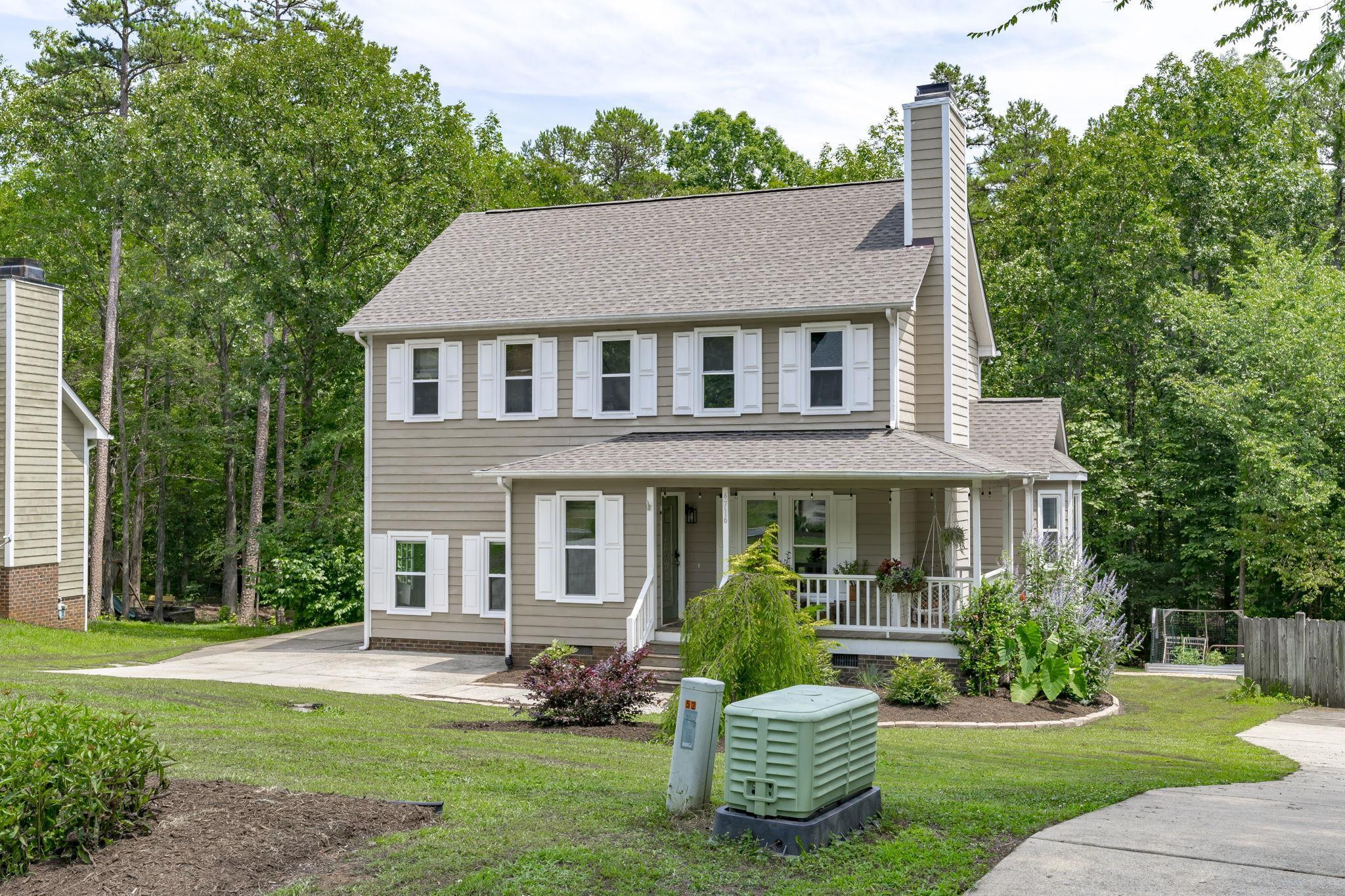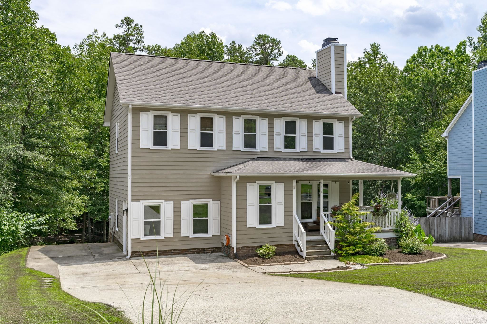 Welcome to Eno Trace, a highly sought after pool/clubhouse community in North Durham. This charming home exudes natural light and character throughout. Step from the rocking chair porch and into the entry way where hardwoods will lead you through the living room and into the kitchen/dining area. Upstairs primary suite offers walk in closet, dual vanity sinks and garden tub/shower combo. Two additional bedrooms and full bath upstairs. For all of those privacy and nature lovers, this home ideally backs to Eno River & Mountain To Sea Trail. Back deck overlooks large flat yard with raised gardening beds. Garage converted into flexible space, perfect for a work from home office or bonus area. Home has been wonderfully maintained to include big ticket improvements making it move in ready today! New roof (2023), New windows (2022), New Carpet (2023), Refurbished Deck (2022), New Side Storm Door (2023), & New Vapor Barrier in crawl space (2023). Convenient access to Duke University, RDU, RTP, Shopping, Recreation & so much more! *** Showings Start Saturday July 15th***