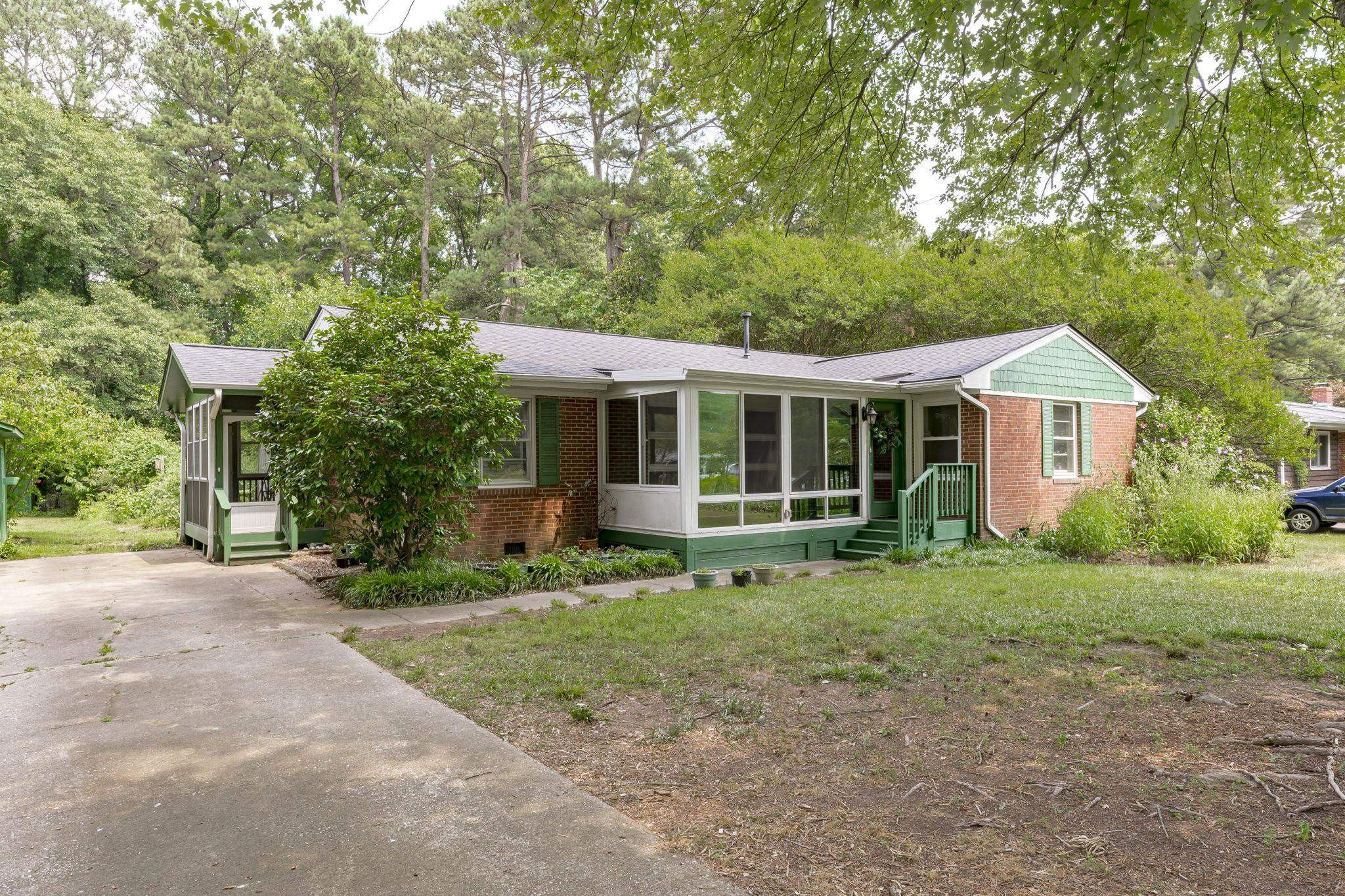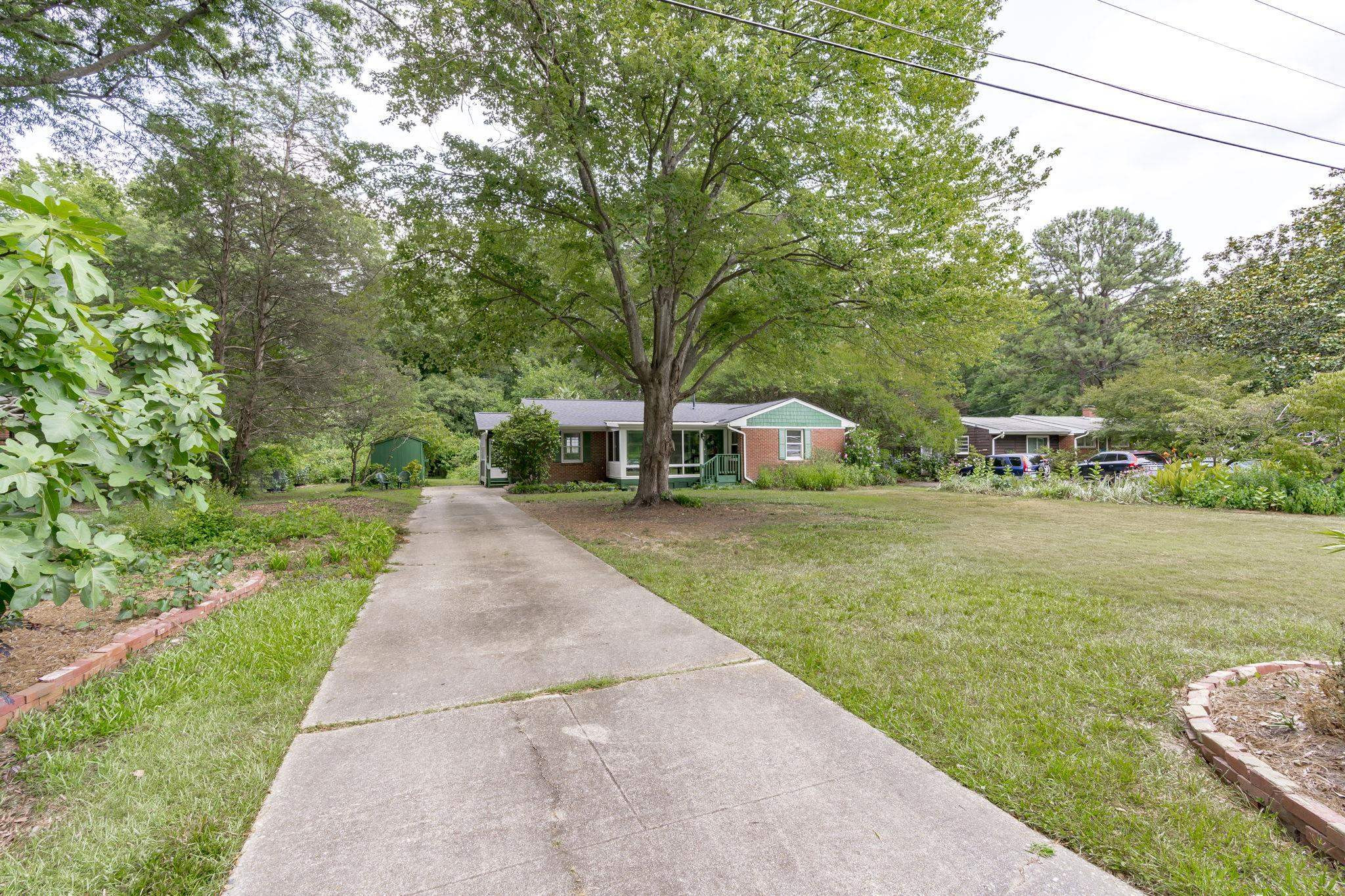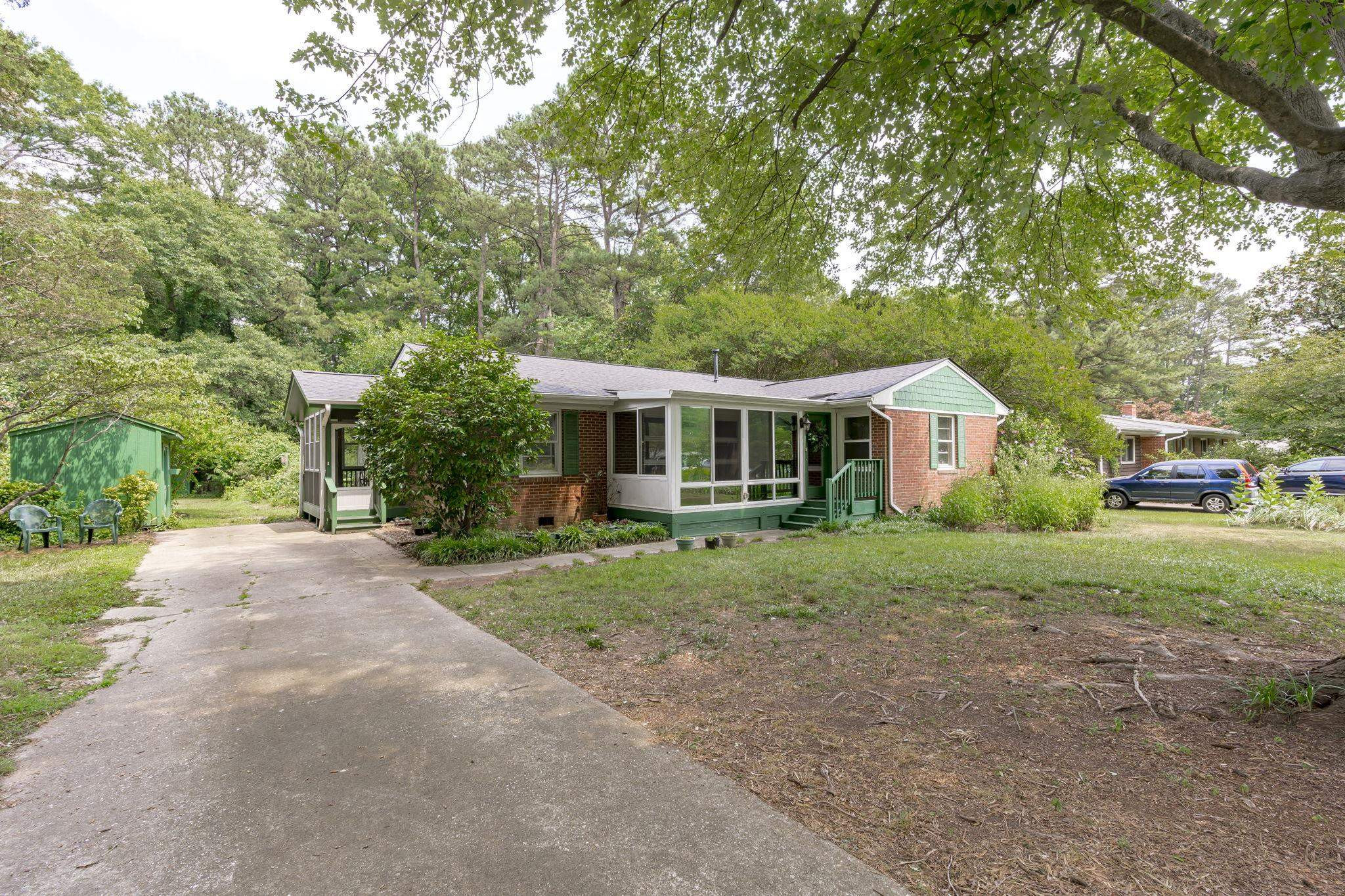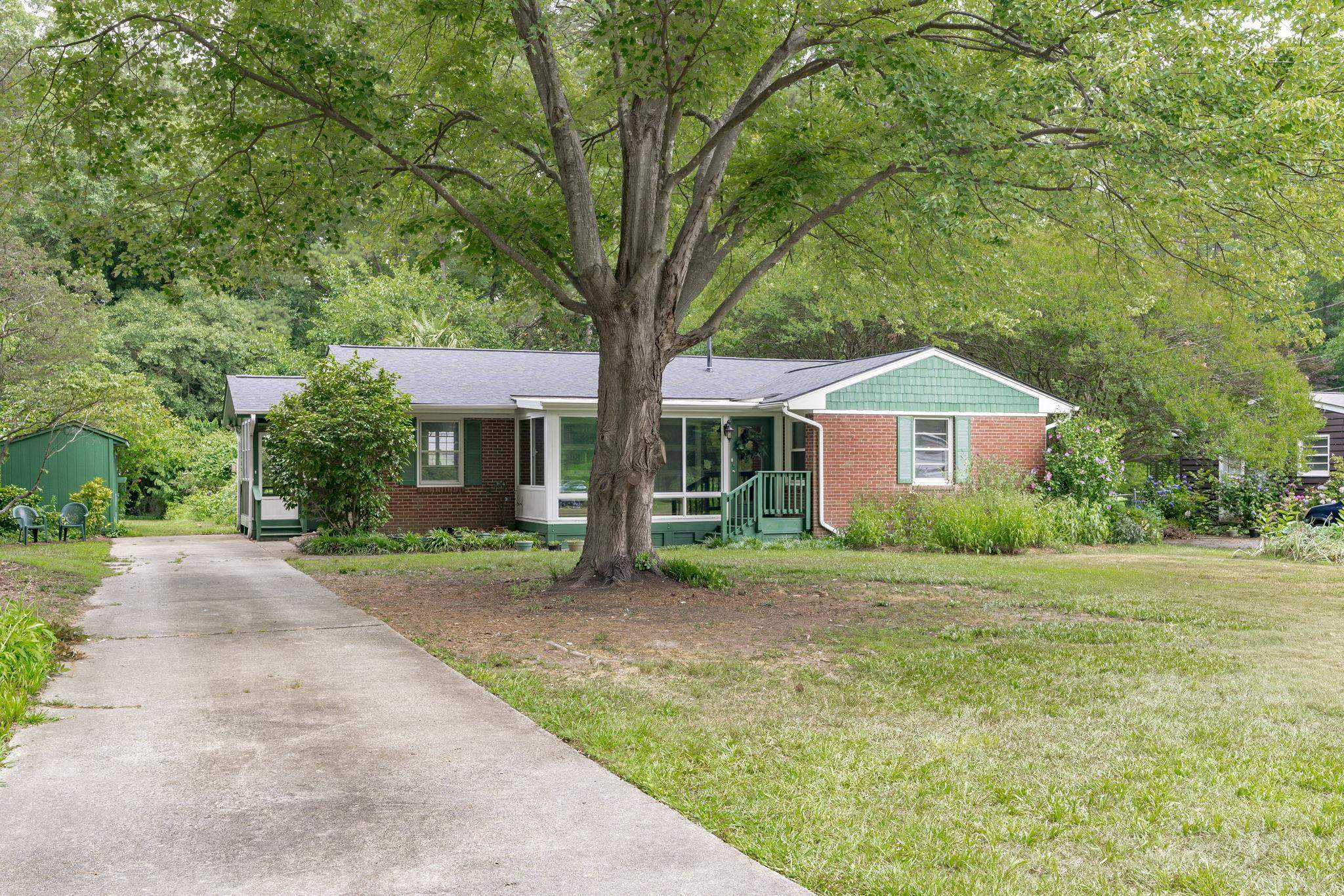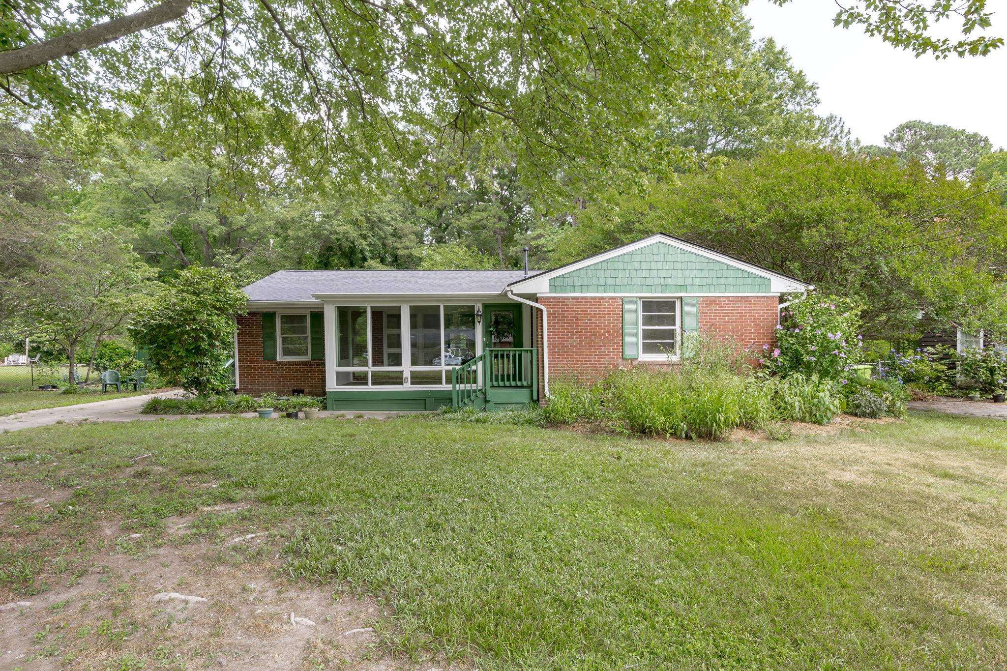 Explore the potential in this charming three bedroom, two bath ranch home. This home sits peacefully on .57 acres of flat land, nestled in an established and well known neighborhood. Relax and explore your green thumb-ability with the greenhouse, storage sheds for all of your gardening tools and fruit producing plants, to include fig/pomegranate/persimmon trees and blueberry/raspberry bushes. Be sure to take some time to unwind in the enclosed porch. Original hardwood floors. NEW ROOF and NEW WATER HEATER. Fiber cement shakes replaced 2021. Vapor barrier and sump pump 2020. Ideally located within minutes of Cary, PNC Arena, I-40, I-440, US-1, NC State and even shopping at the latest and greatest Fenton development. Go Raleigh bus transit available. No HOA. Home is being sold as-is.