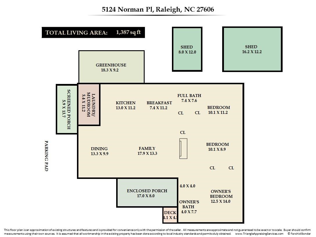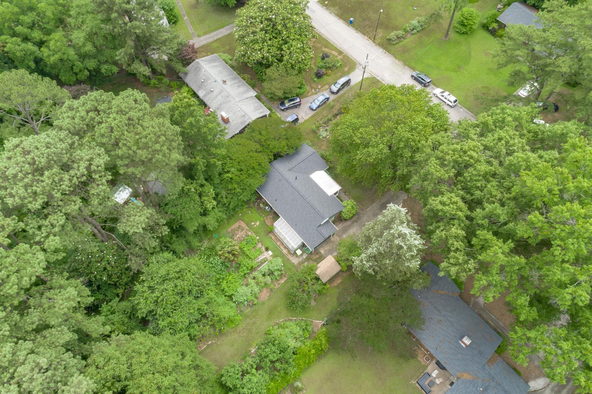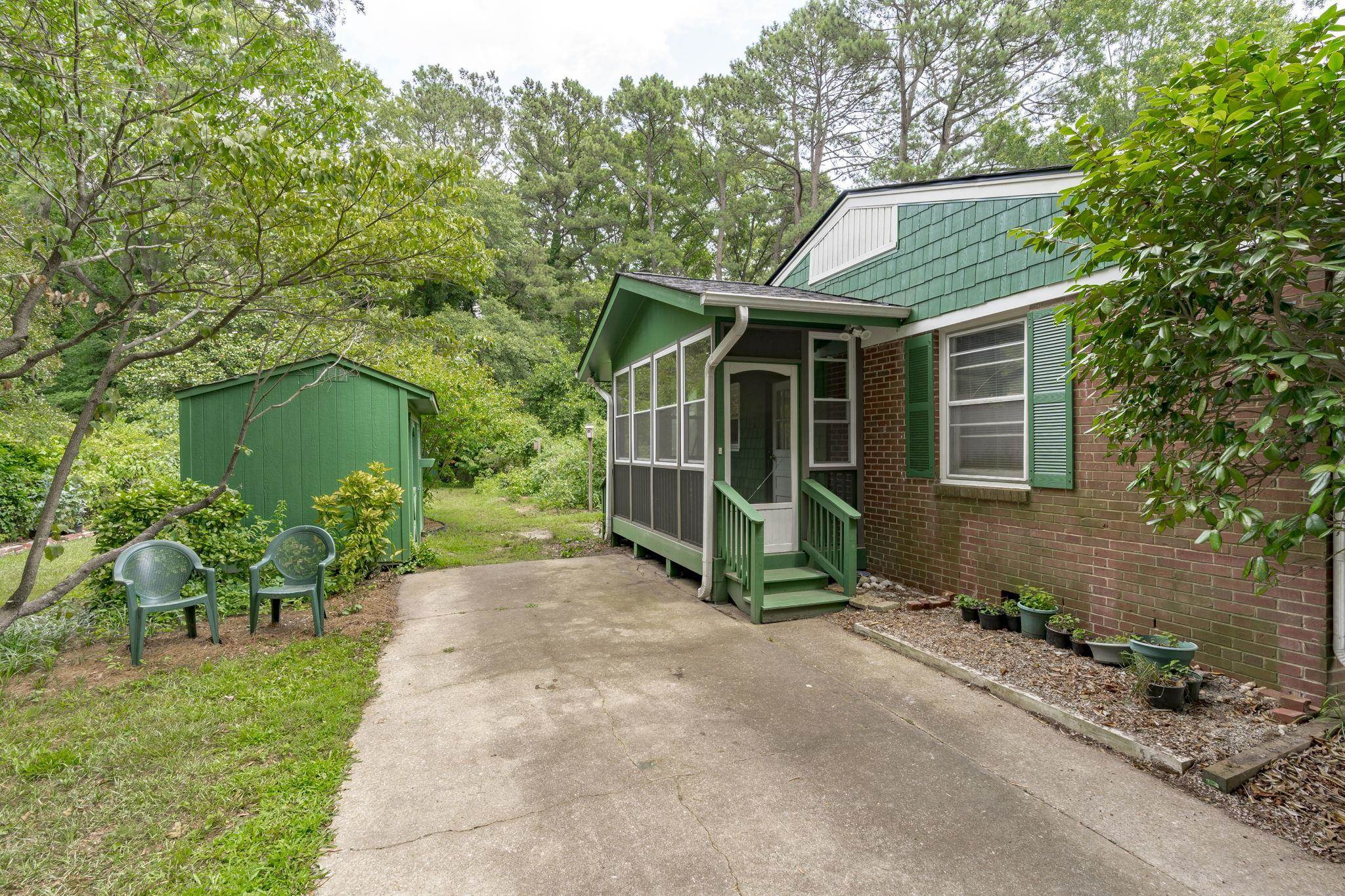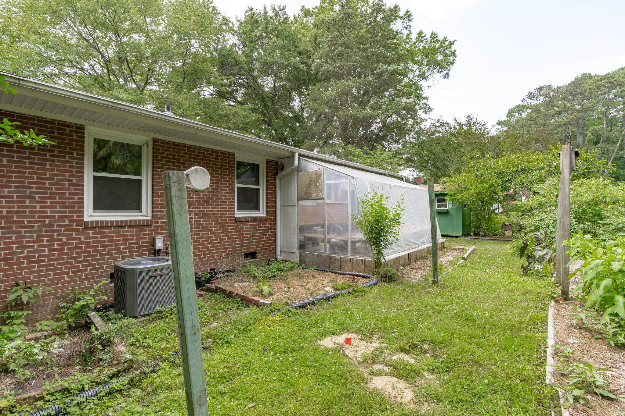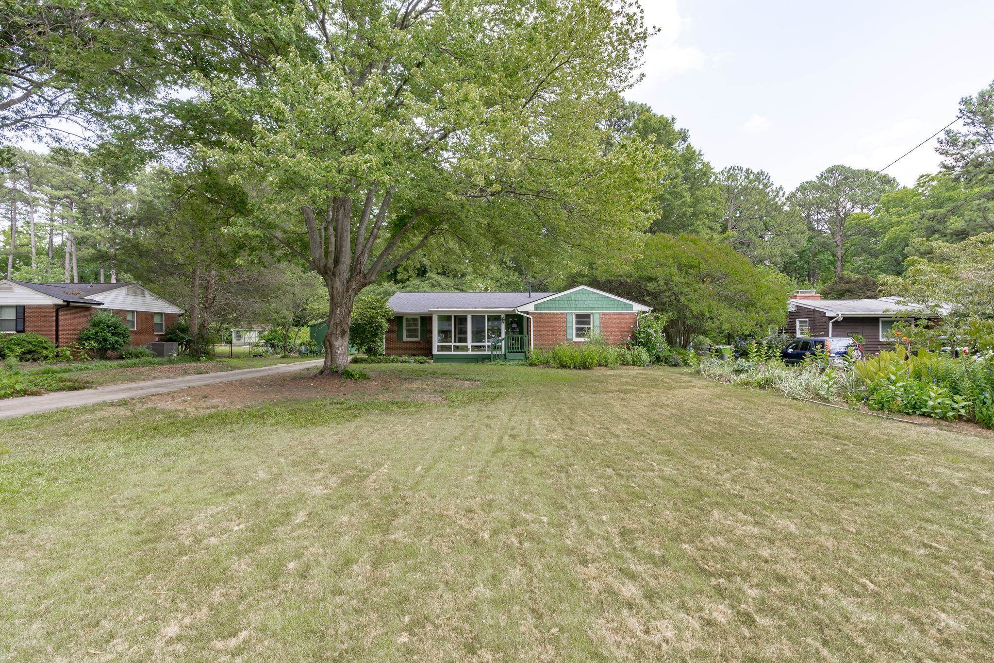 Explore the potential in this charming three bedroom, two bath ranch home. This home sits peacefully on .57 acres of flat land, nestled in an established and well known neighborhood. Relax and explore your green thumb-ability with the greenhouse, storage sheds for all of your gardening tools and fruit producing plants, to include fig/pomegranate/persimmon trees and blueberry/raspberry bushes. Be sure to take some time to unwind in the enclosed porch. Original hardwood floors. NEW ROOF and NEW WATER HEATER. Fiber cement shakes replaced 2021. Vapor barrier and sump pump 2020. Ideally located within minutes of Cary, PNC Arena, I-40, I-440, US-1, NC State and even shopping at the latest and greatest Fenton development. Go Raleigh bus transit available. No HOA. Home is being sold as-is.