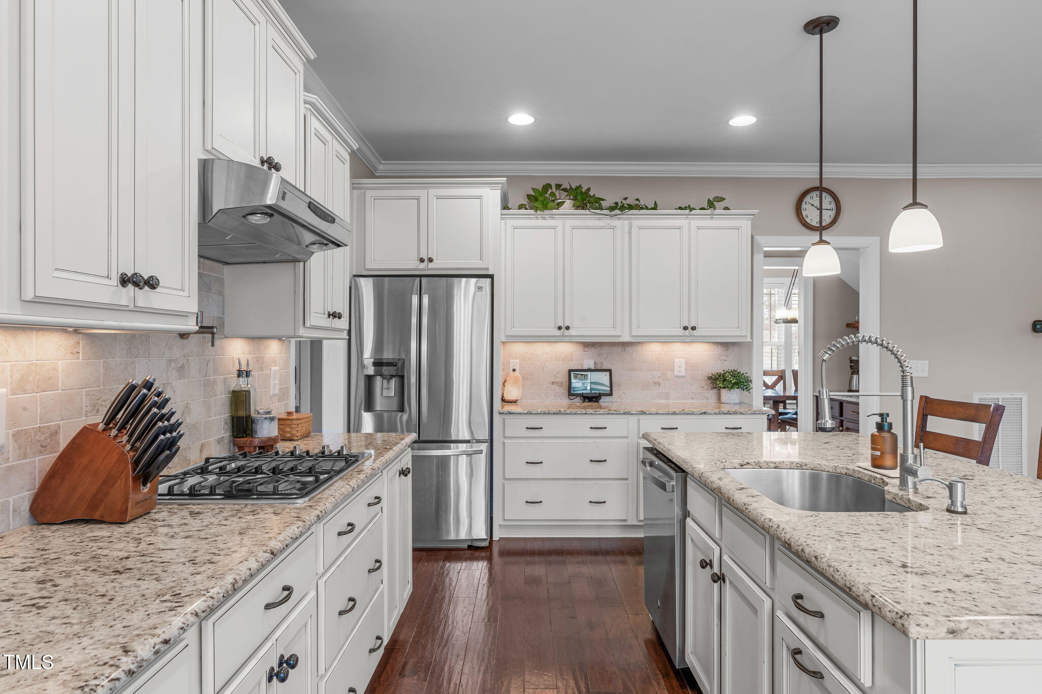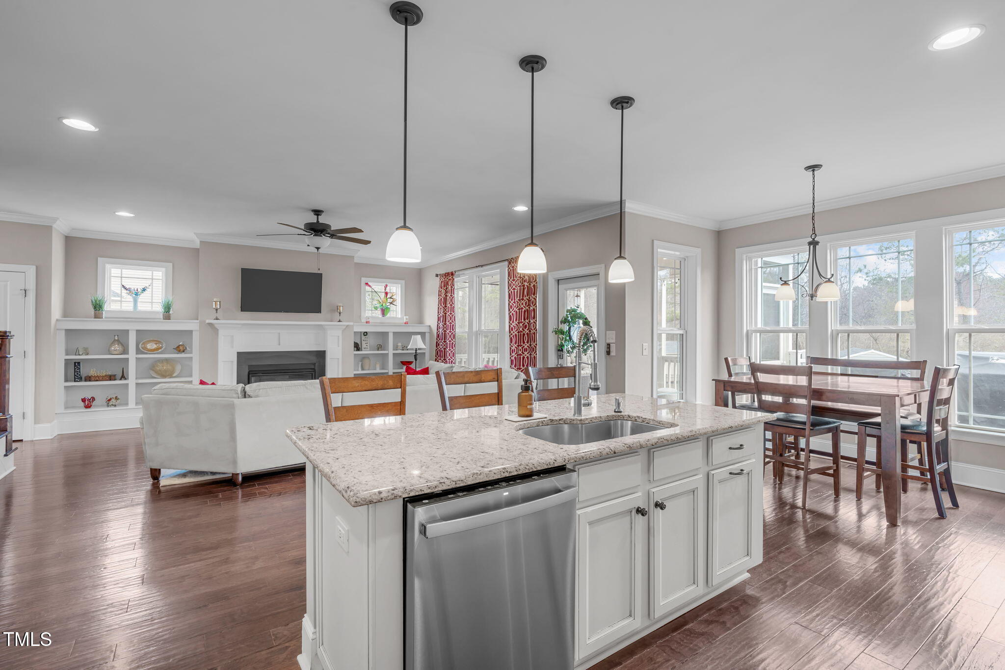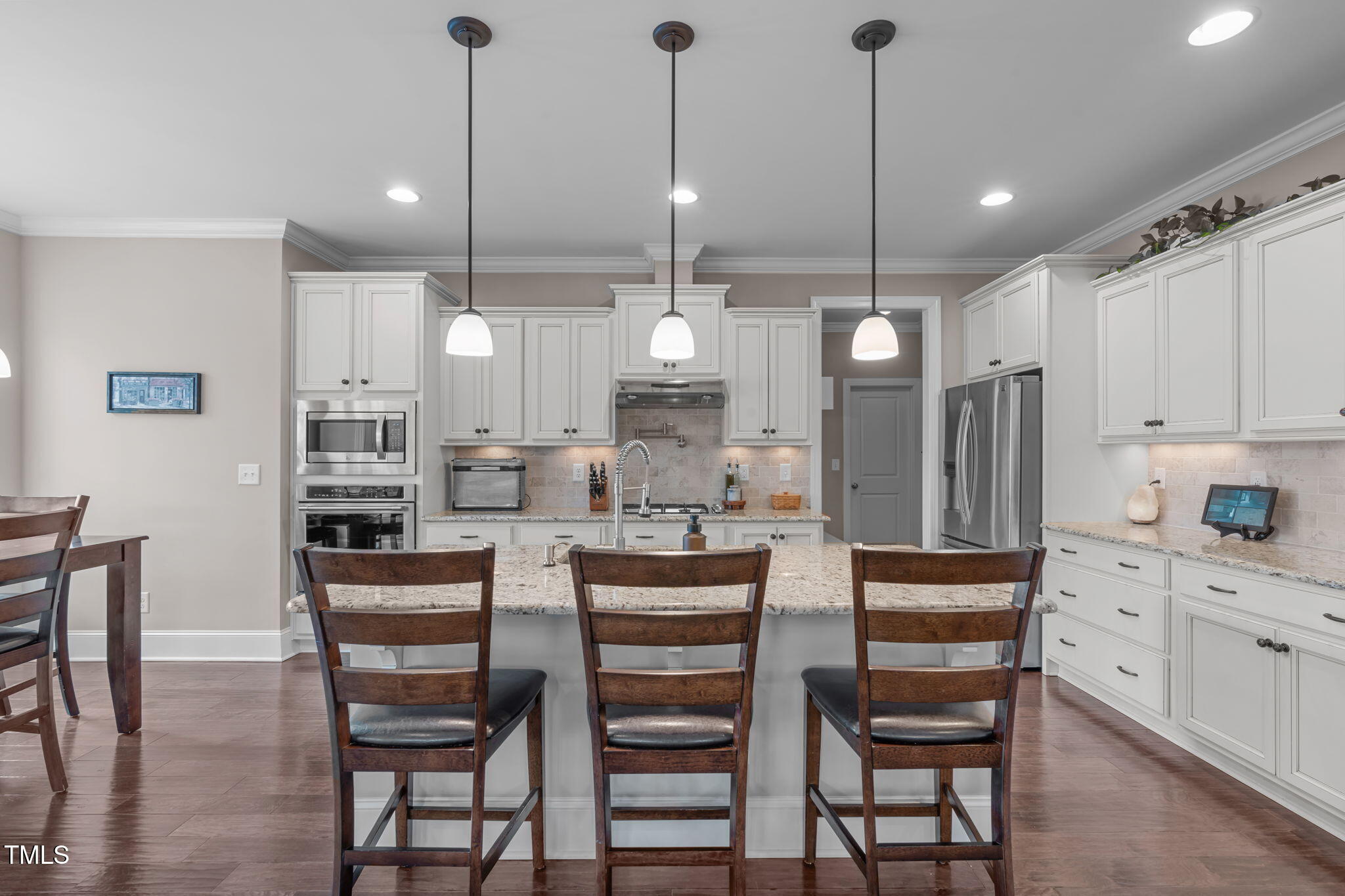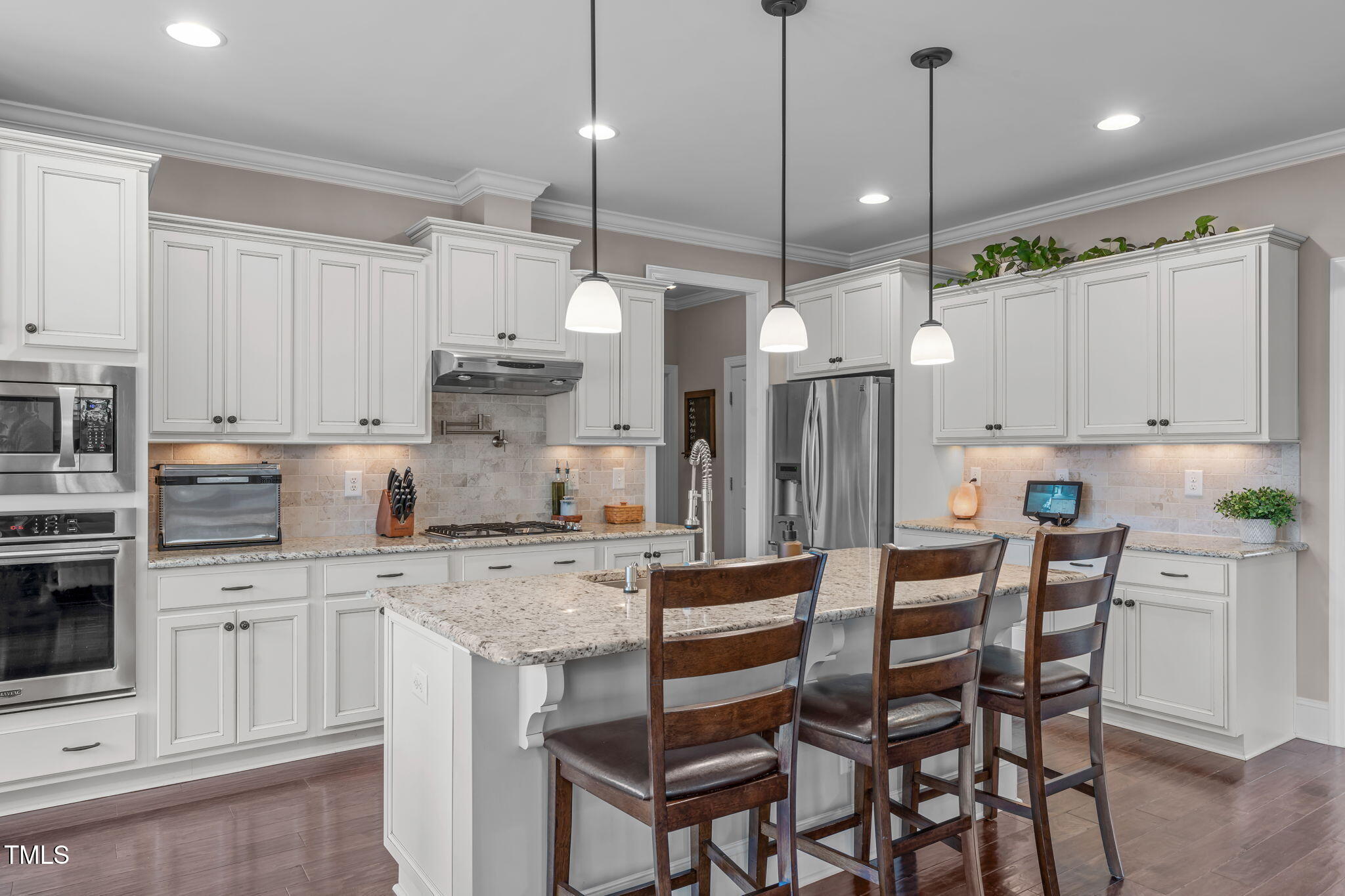 Step inside to custom built-ins, extensive trim work, and an open-concept design that's perfect for everyday living and entertaining. The gourmet kitchen features a gas cooktop, built-in wall oven, pot filler, walk-in pantry, and seamless access to outdoor grilling. A cozy family room with a natural gas fireplace adds warmth and charm.